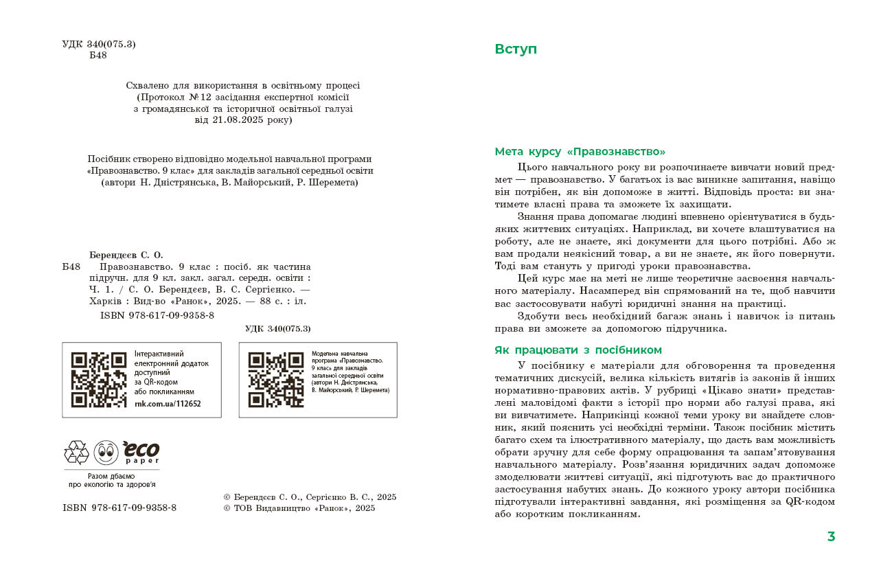 Пропонований посібник створено відповідно до модельної навчальної програми “Правознавство” для 6 – 9 класів