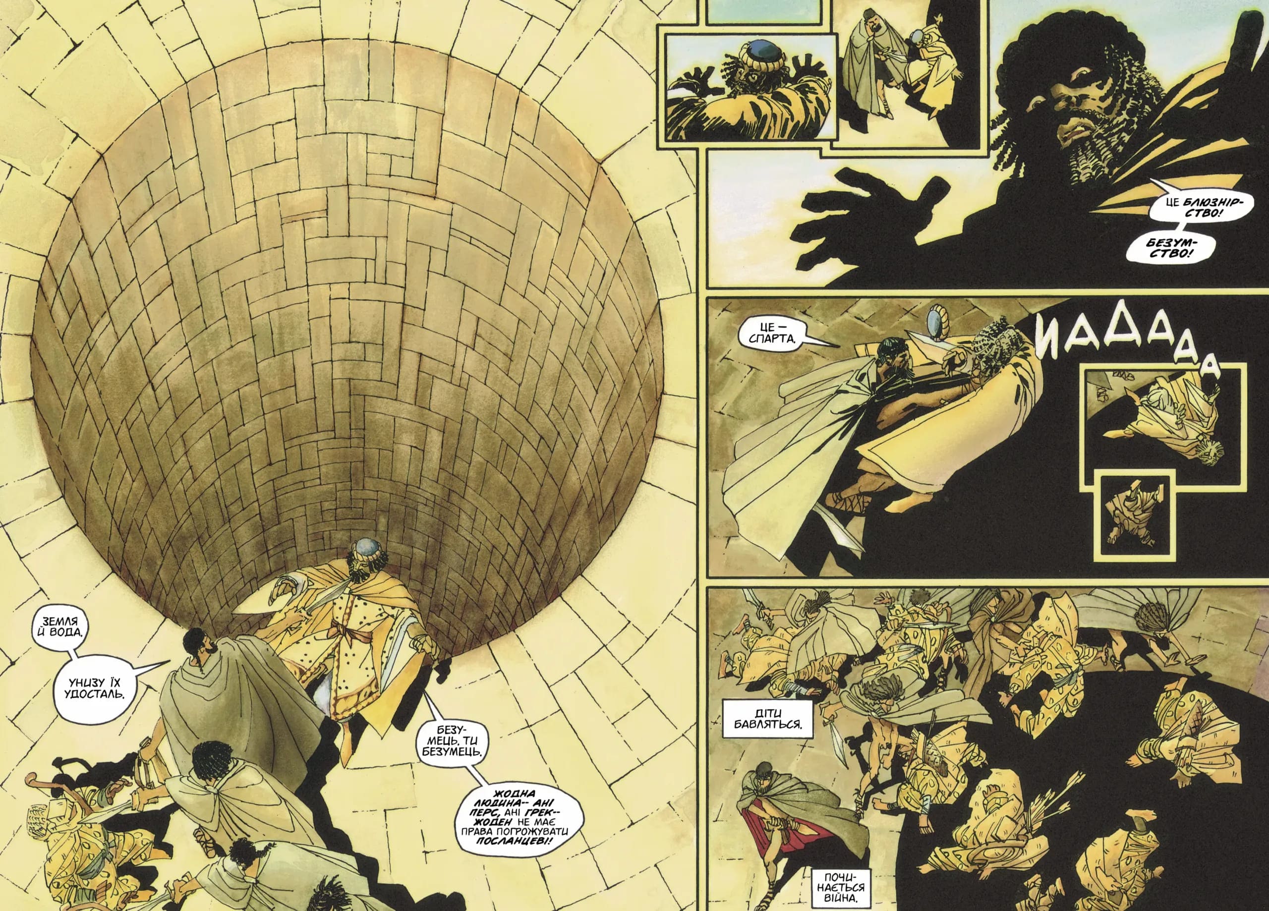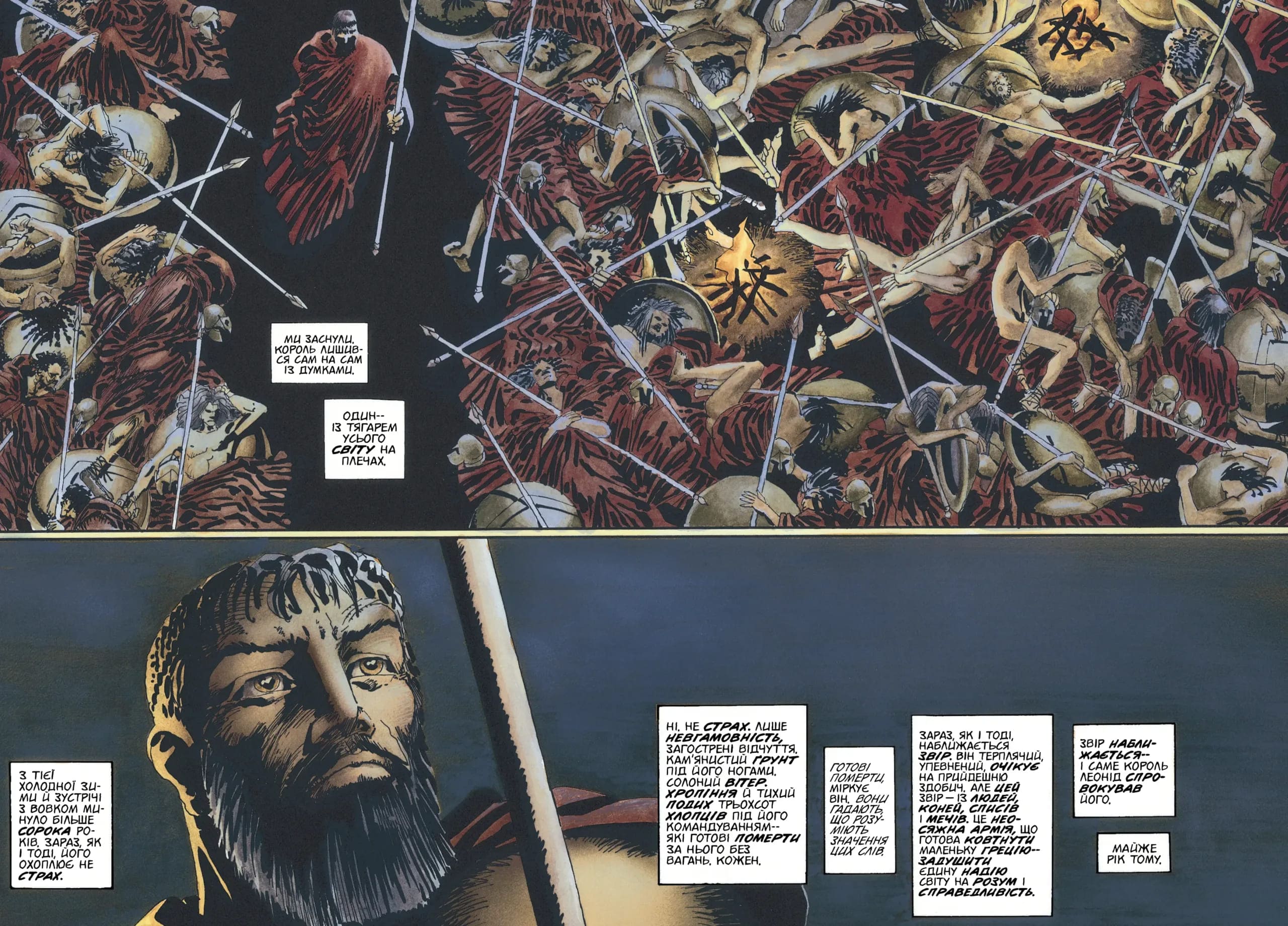 Армія Персії — настільки могутня, що струшує землю своїм маршем,— готова розчавити Грецію, острів розуму та свободи серед моря містифікацій і тиранії. Між Грецією та хвилею руйнації стоїть лише маленький загін із трьохсот воїнів. Але ці воїни не просто люди…