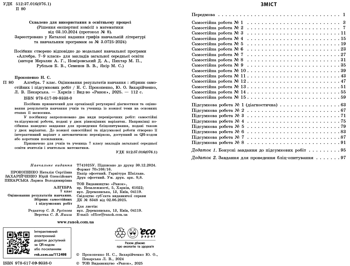 Посібник призначений для організації регулярної діагностики та оцінювання результатів навчання учнів та учениць з кожної теми на основних етапах її засвоєння.