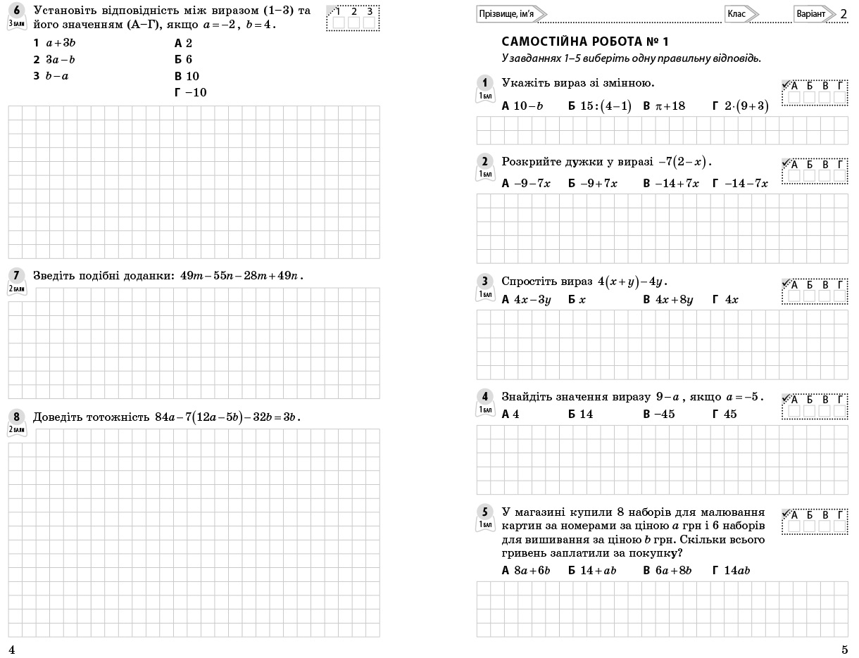 Алгебра. 7 клас. Зошит для оцінювання результатів навчання (до підруч. Прокопенко та ін.)