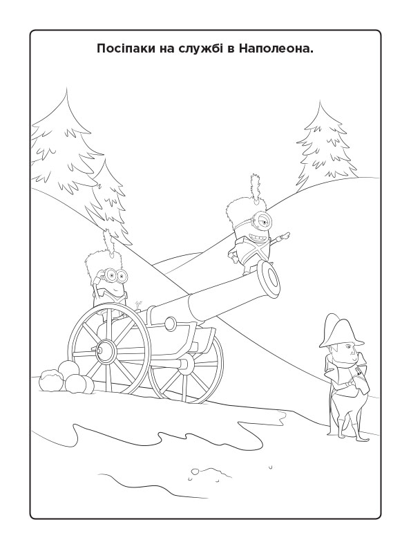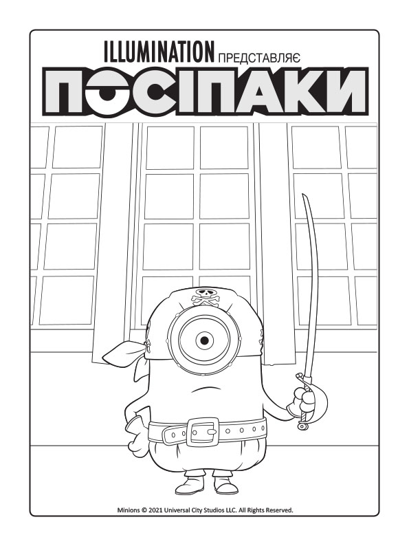 Розважайся разом із посіпаками! Розфарбовуй веселі малюнки та оживи їхні пригоди! 12 безбарвних сторінок чекають яскравої допомоги! Усередині книжки наліпки, а з обкладинки можна вирізати маску улюбленого посіпаки.