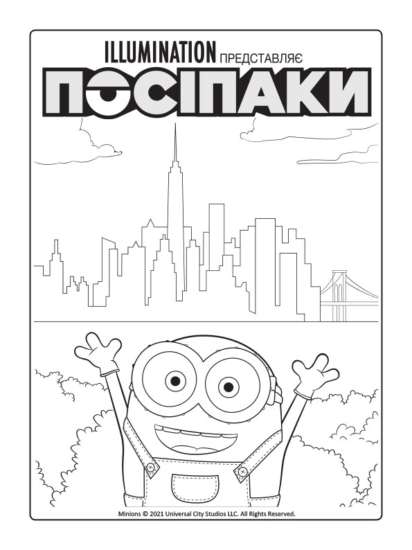 Розважайся разом із посіпаками! Розфарбовуй веселі малюнки та оживи їхні пригоди! 12 безбарвних сторінок чекають яскравої допомоги! Усередині книжки наліпки, а з обкладинки можна вирізати маску улюбленого посіпаки.