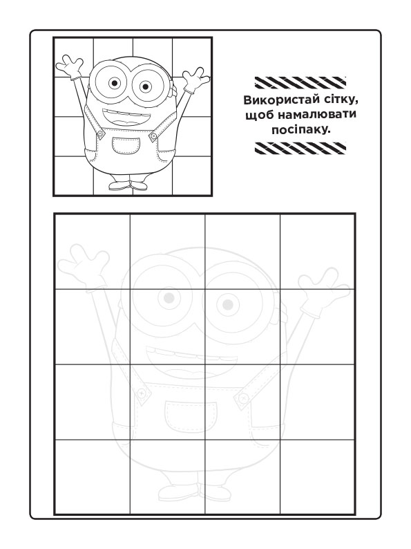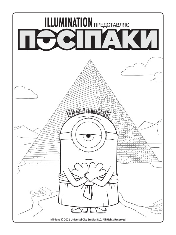Розважайся разом із посіпаками! Розфарбовуй веселі малюнки та оживи їхні пригоди! 12 безбарвних сторінок чекають яскравої допомоги! Усередині книжки наліпки, а з обкладинки можна вирізати маску улюбленого посіпаки.