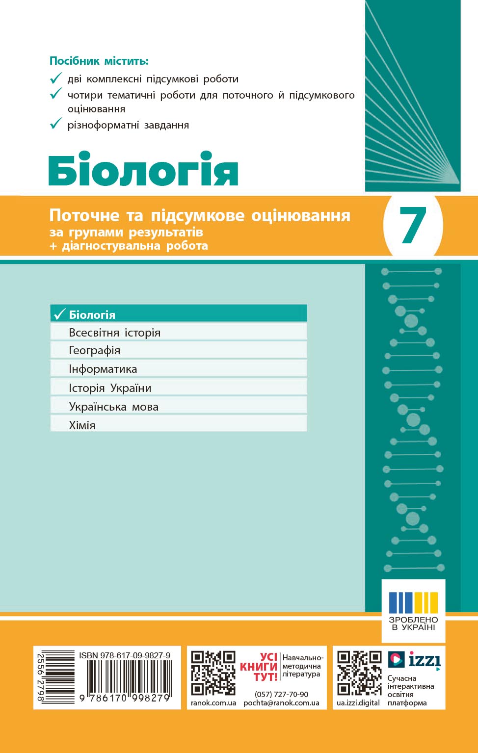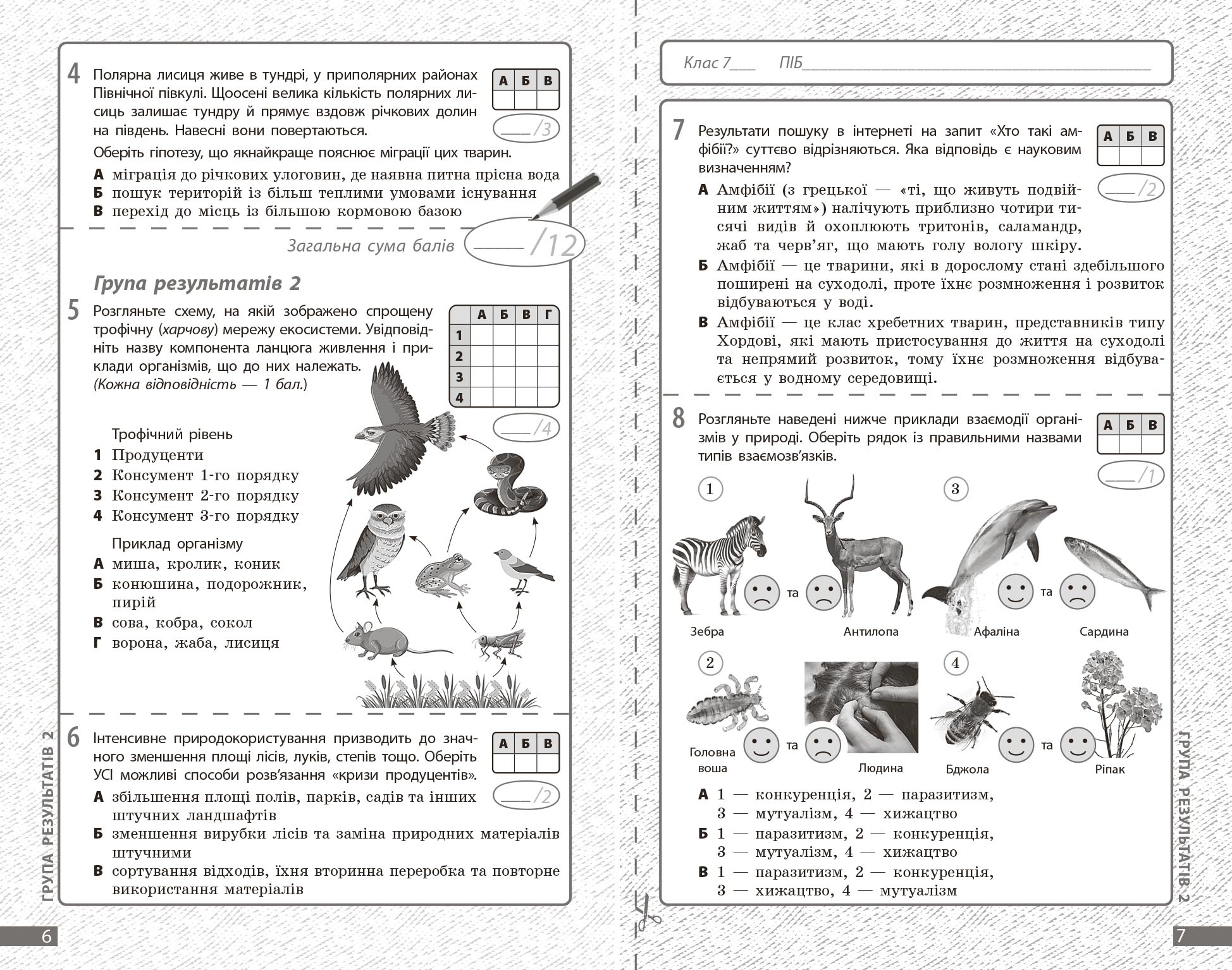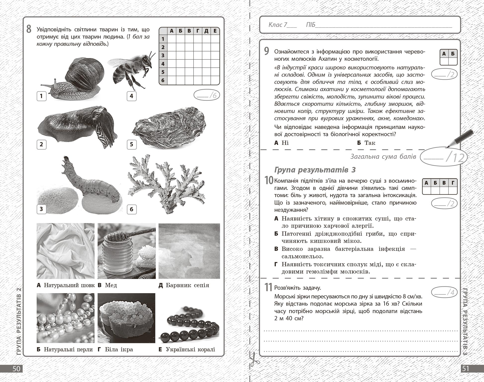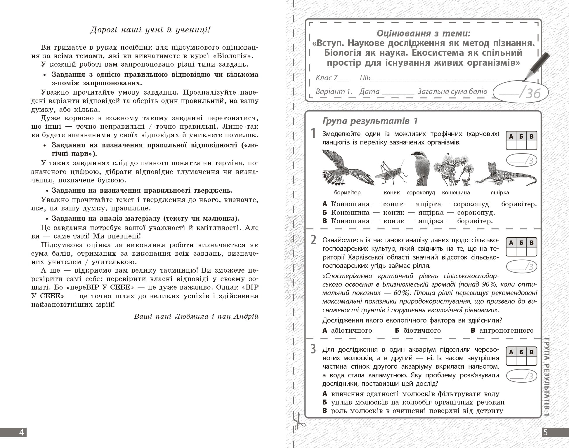 Посібник містить добірку завдань за групами результатів згідно з модельною навчальною програмою. Видання призначене для учнів і учениць 7-го класу ЗЗСО та вчителів / учительок курсу «Біологія».