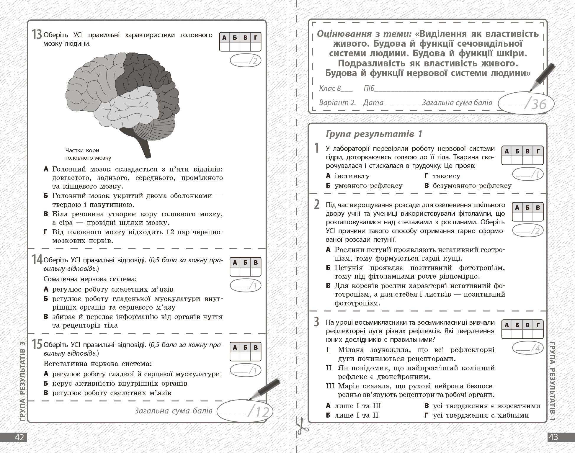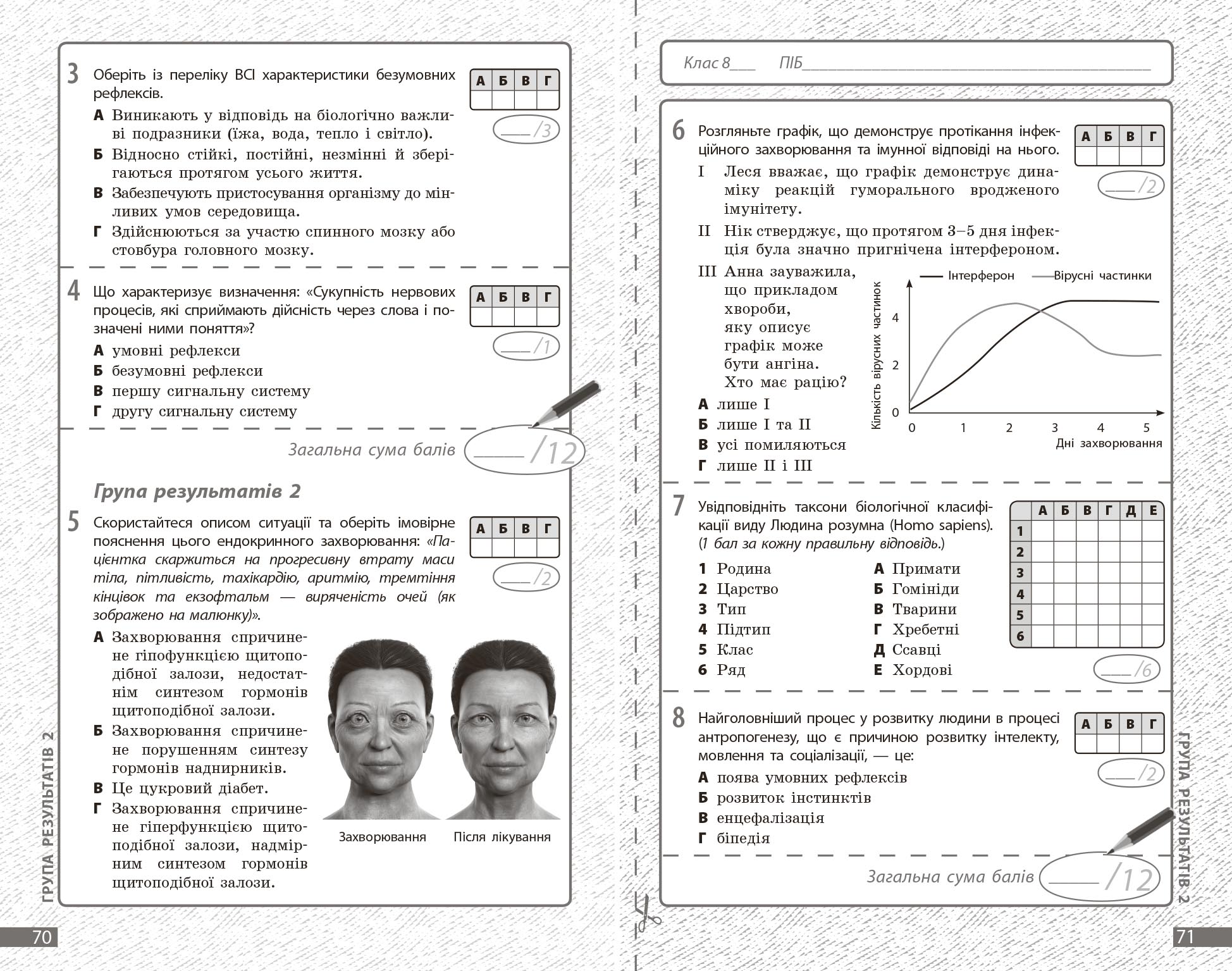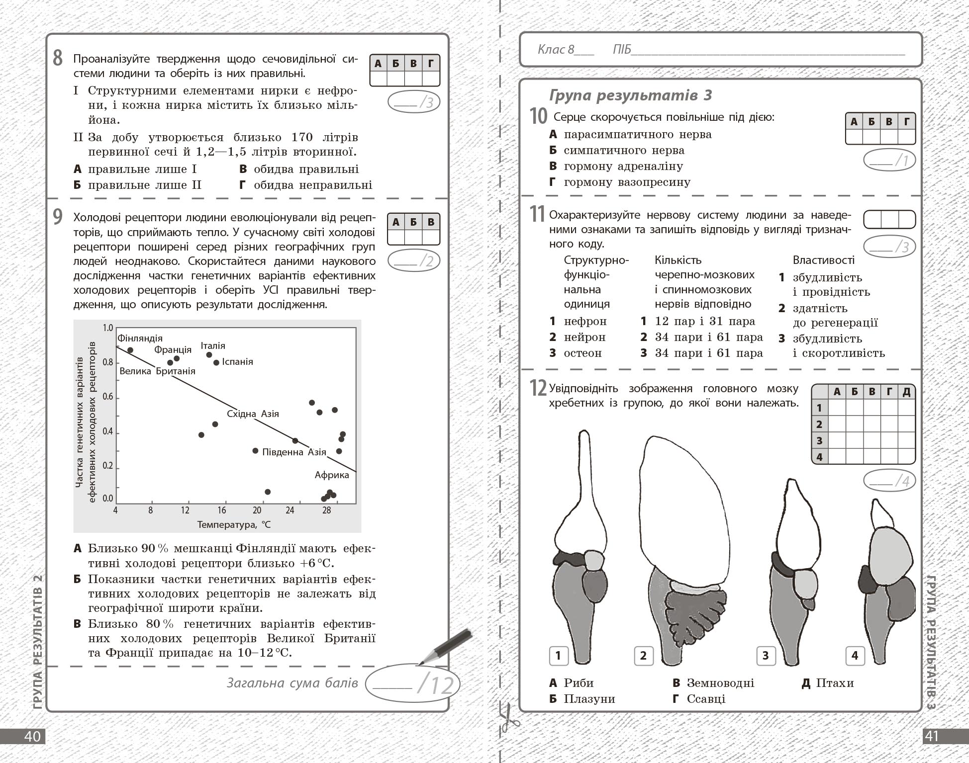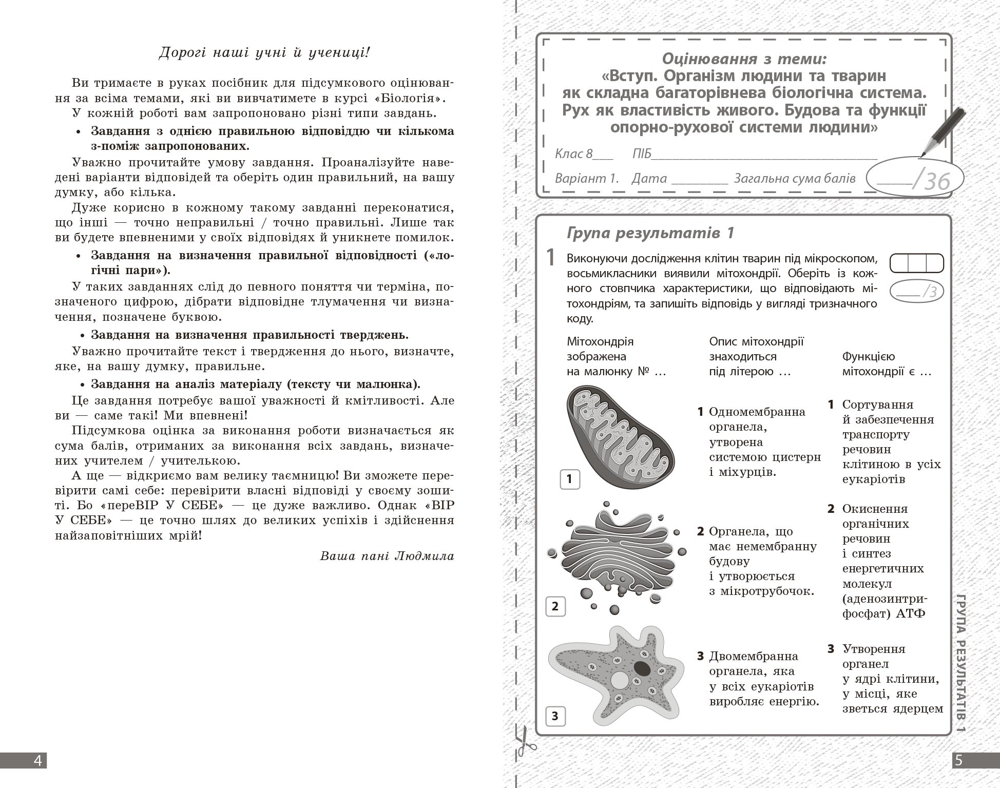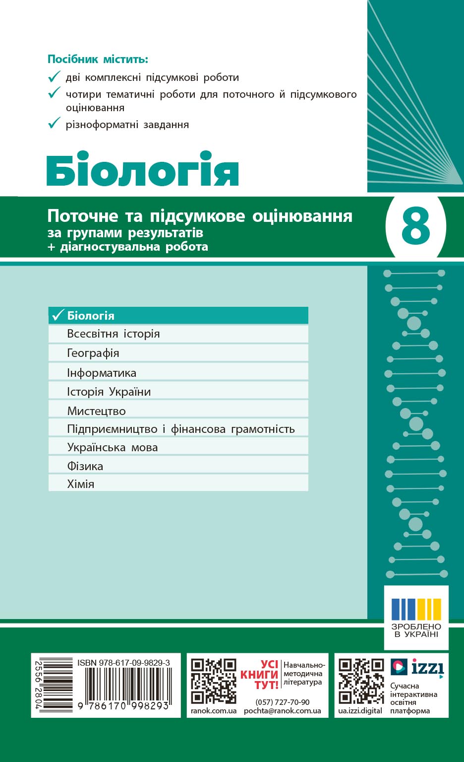 Посібник містить добірку завдань за групами результатів згідно з модельною навчальною програмою. Видання призначене для учнів і учениць 8-го класу ЗЗСО та вчителів / учительок курсу «Біологія».