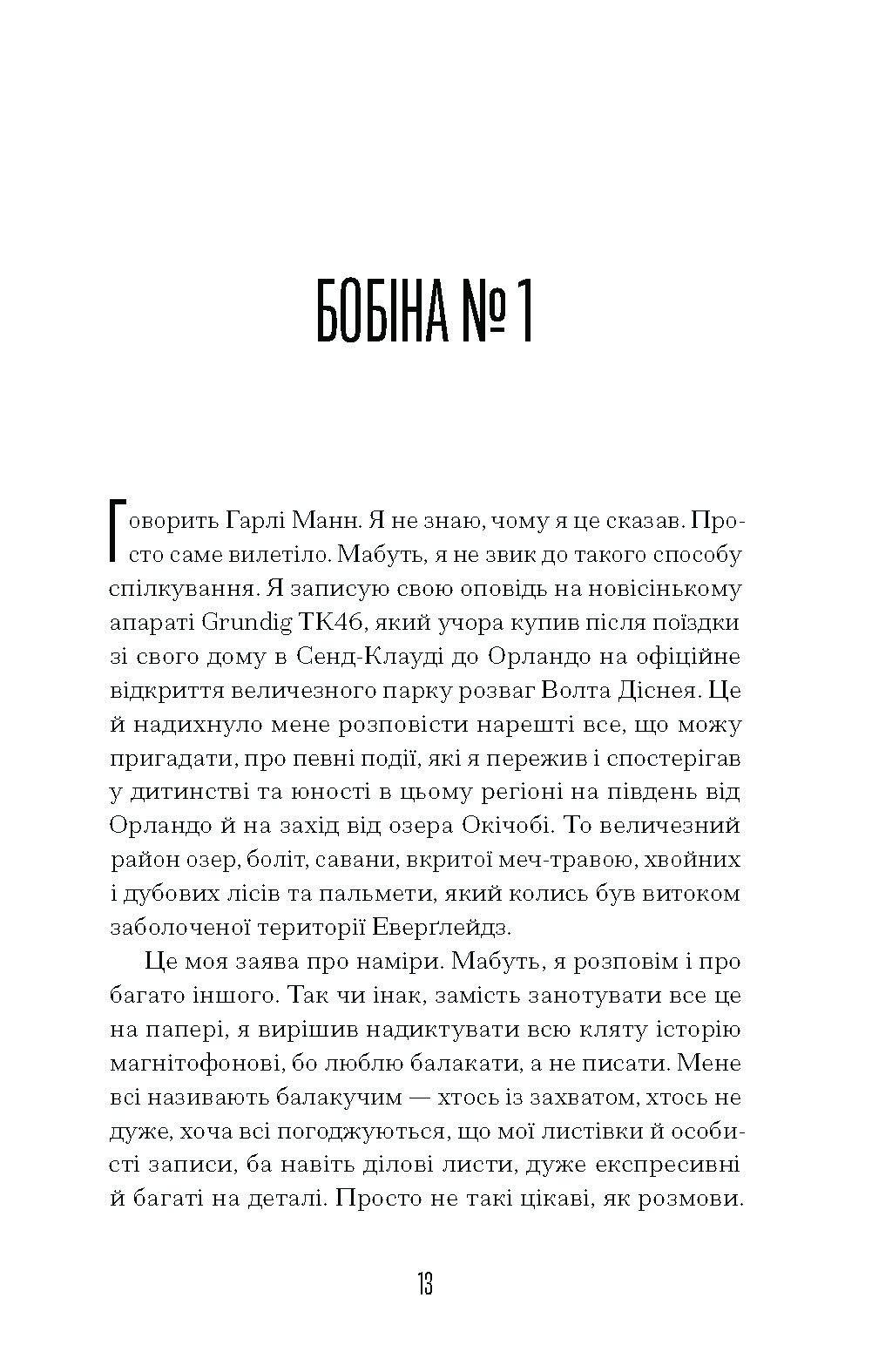 1971 року спекулянт нерухомістю Гарлі Манн починає записувати історію свого життя на магнітофон. Після раптової смерті батька його сім’я переїхала до болотистої місцевості Флориди — на землю, що згодом стане Світом Діснея, — аби приєднатися до спільноти шейкерів. Очолювана старійшиною Джоном, щедрою людиною із загадковим минулим, колонія присвятила себе праці, вірі та милосердю, відкидаючи всі матеріальні спокуси.