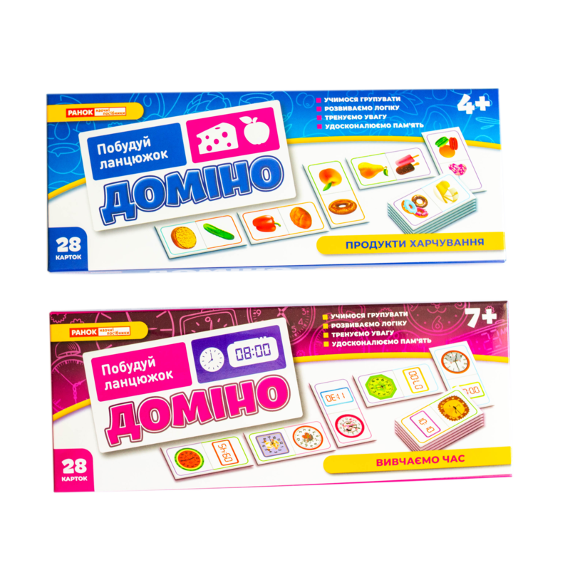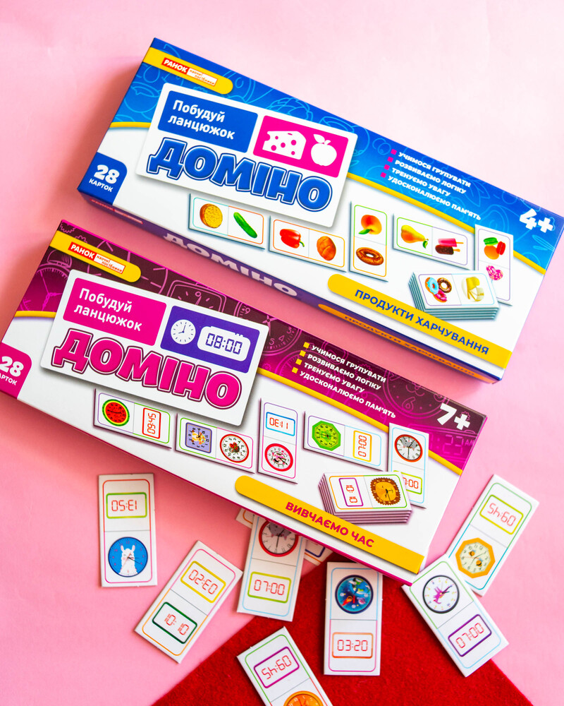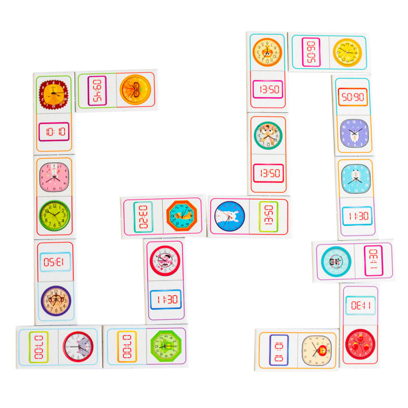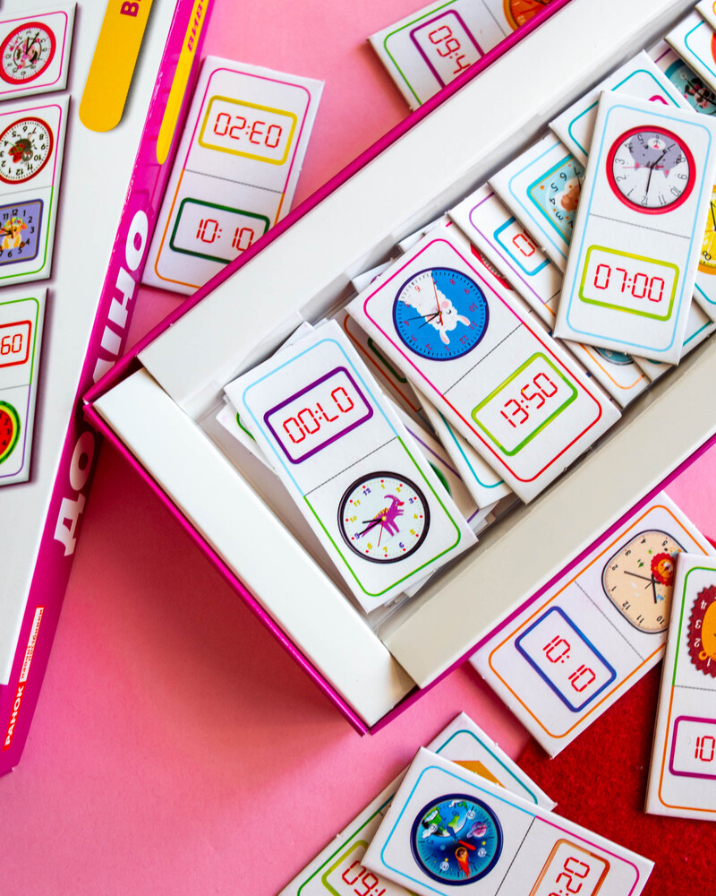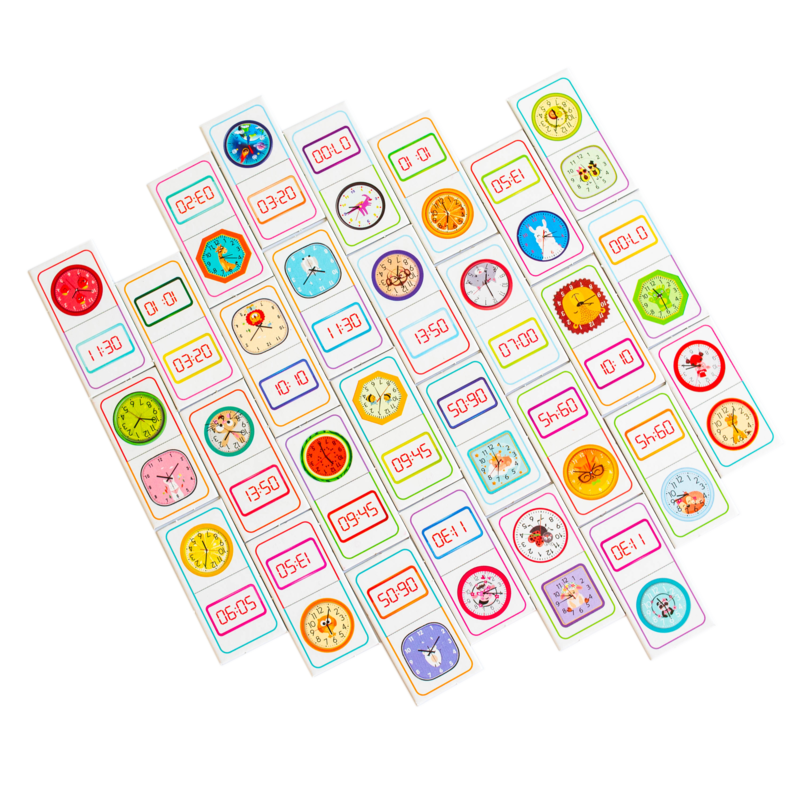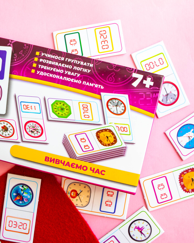 Доміно «Вивчаємо час» — це класична гра в оновленому форматі, що допомагає дітям легко навчитися визначати час. Малюки поєднують зображення на фішках, співставляючи електронний і механічний годинники, а кольорові рамочки підказують правильні відповіді. Така форма гри формує розуміння часу природно й цікаво, розвиває логіку, увагу, памʼять і навички групування. Гра має прості правила, швидко захоплює дітей і зручно підходить для занять удома, у школі, садочку або з логопедом. Компактна коробка дозволяє брати її з собою в дорогу.