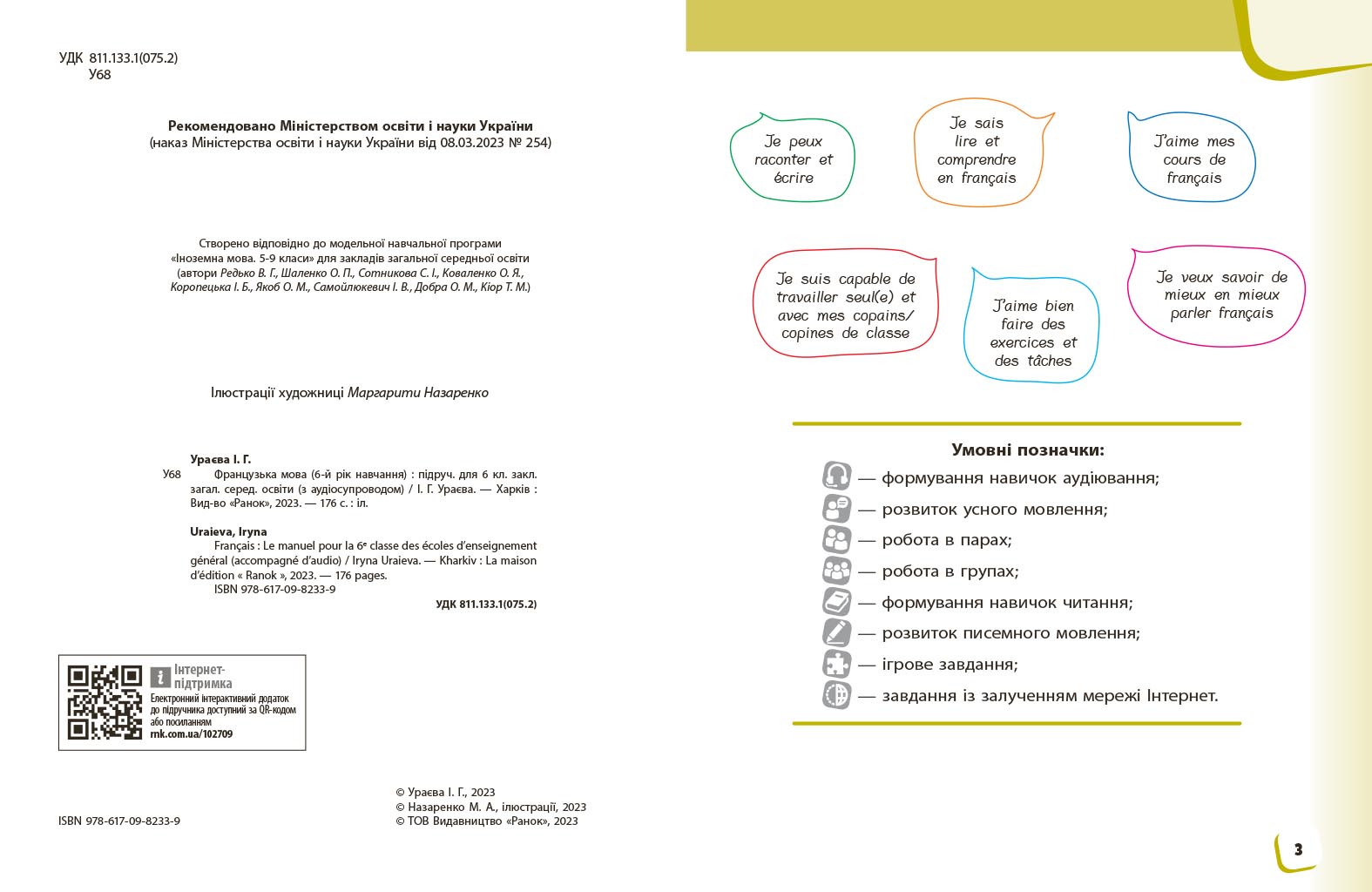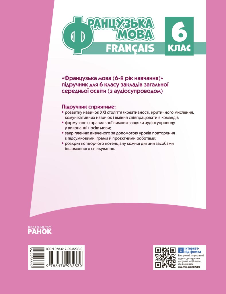 Підручник французької мови, створений для 6 класу НУШ, ґрунтується на компетентнісному, комунікативному, діяльнісному й особистісно орієнтованому підходах.