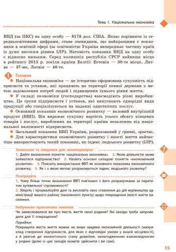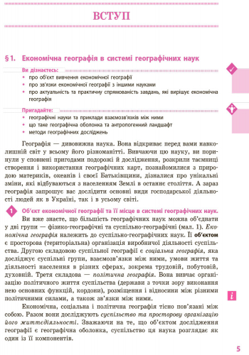 Підручник містить обов’язковий обсяг навчального матеріалу, усі необхідні теоретичні відомості й поняття. Методичний апарат відповідає сучасним вимогам викладання географії. У підручнику наведені програмові практичні роботи та географічні дослідження. Карти, схеми та ілюстрації підручника допоможуть краще засвоїти основні факти й поняття курсу.