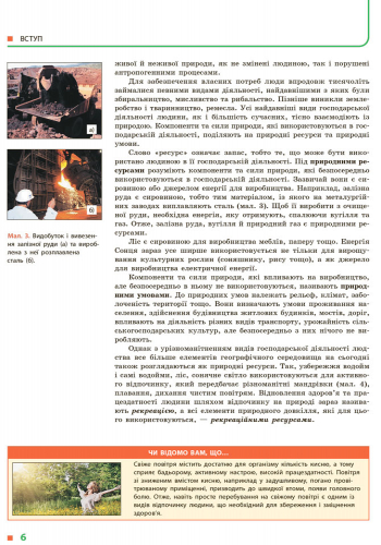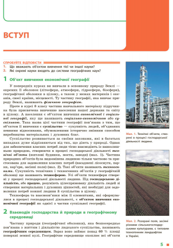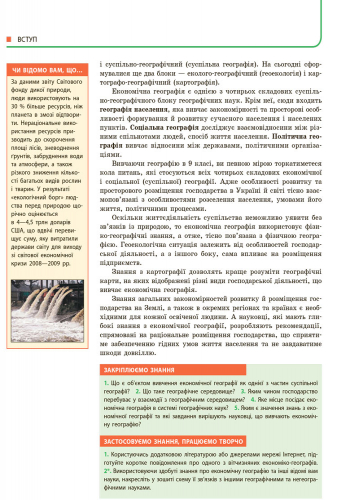 Підручник містить обов’язковий обсяг навчального матеріалу, усі необхідні теоретичні відомості й поняття. Методичний апарат відповідає сучасним вимогам викладання географії. У підручнику наведені програмові практичні роботи та географічні дослідження. Карти, схеми та ілюстрації підручника допоможуть краще засвоїти основні факти й поняття курсу.