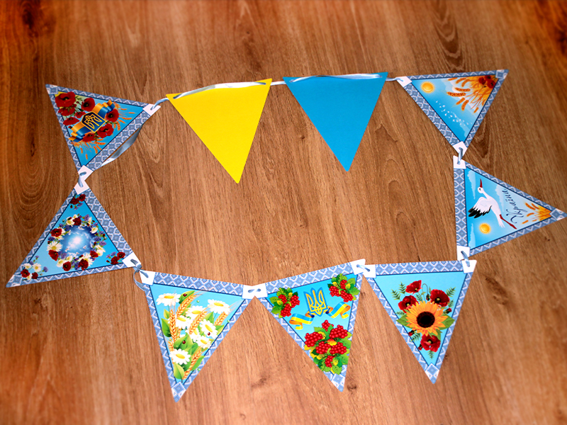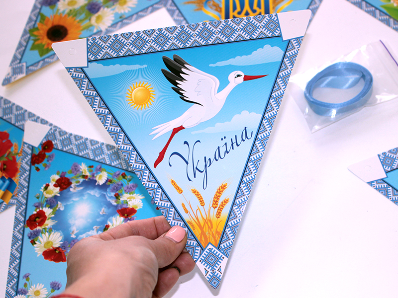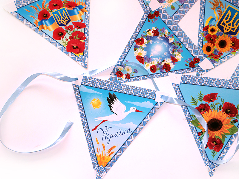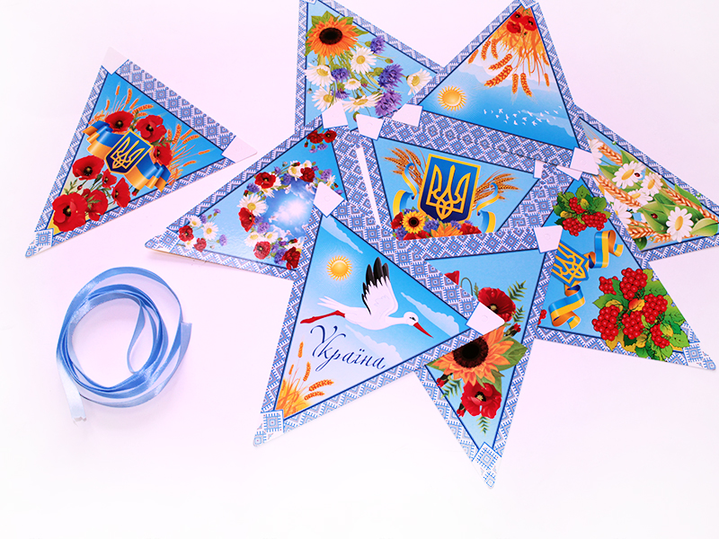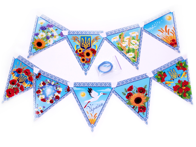 Ніжна та яскрава гірлянда «Символи України» додає затишку класу, групі чи залі. 9 кольорових елементів із калиною, лелекою, полем, небом та іншими образами допомагають дітям пізнавати символи Батьківщини змалечку. Щільний картон, чіткі малюнки, стрічка для підвішування — усе виглядає акуратно й вишукано. Гірлянда багаторазова, тож прикрашає простір не один раз!