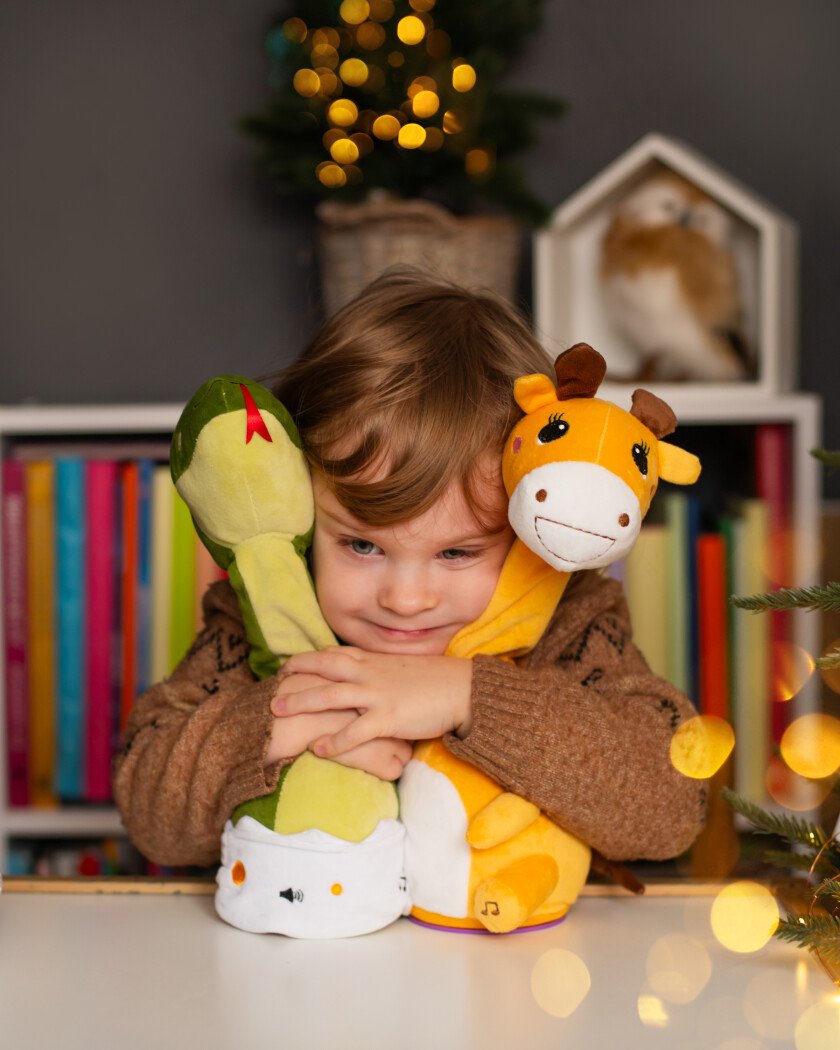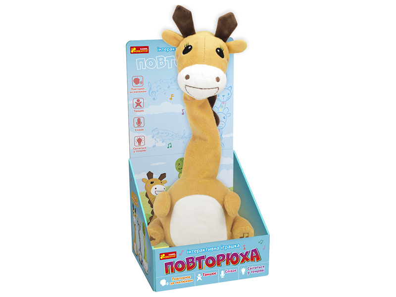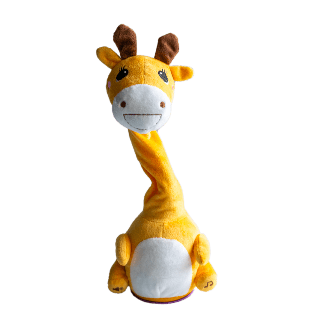 Познайомтесь із веселим «Жирафом» — інтерактивною іграшкою, яка миттєво стане найкращим другом малюка! Він уміє повторювати слова та звуки, танцює, співає й світиться, перетворюючи гру на справжнє свято емоцій. М’який плюшевий корпус у теплих відтінках помаранчевого кольору, кумедні ріжки, гривка та світлий животик — усе в ньому створене для обіймів. Іграшка приємна на дотик і безпечна навіть для найменших діток.