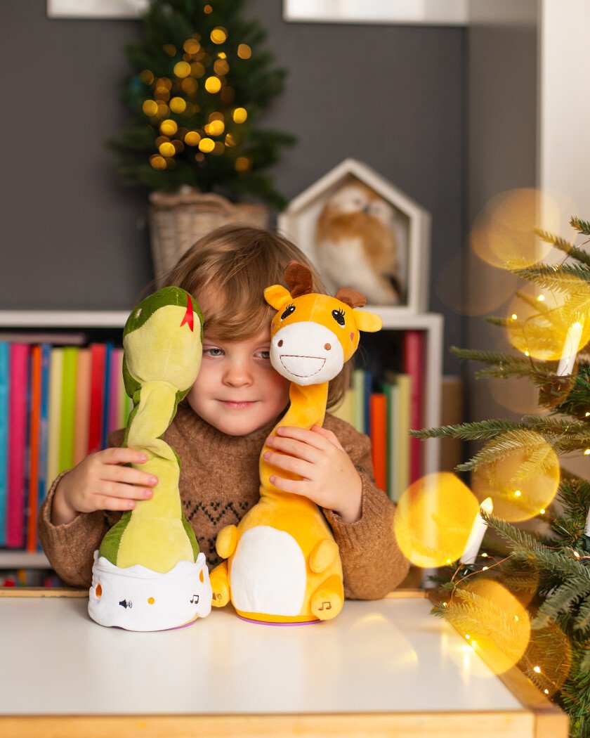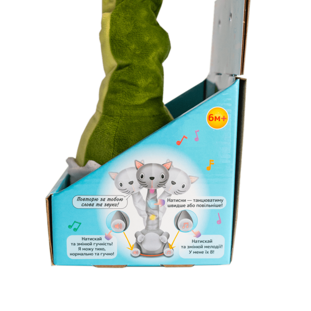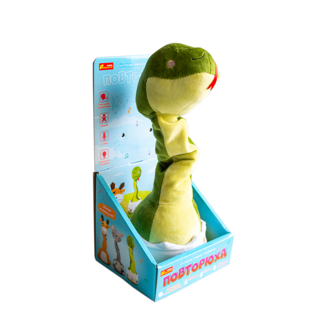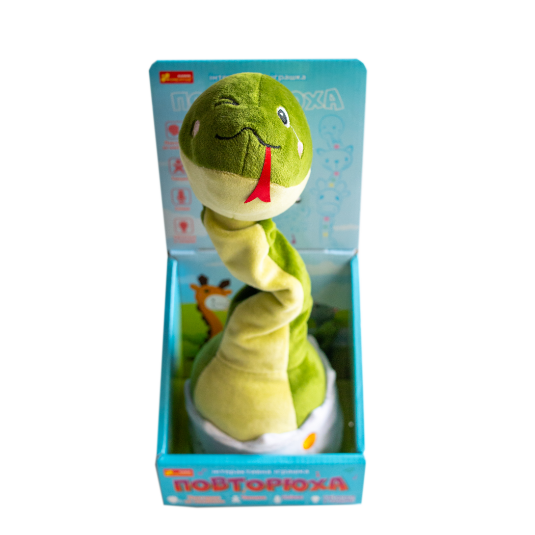 нтерактивна іграшка-повторюшка «Змія» – яскравий і веселий друг для малюків від 6 місяців. Вона повторює слова та звуки кумедним голосом, співає, танцює і світиться, пропонуючи справжнє інтерактивне знайомство з музикою та мовленням