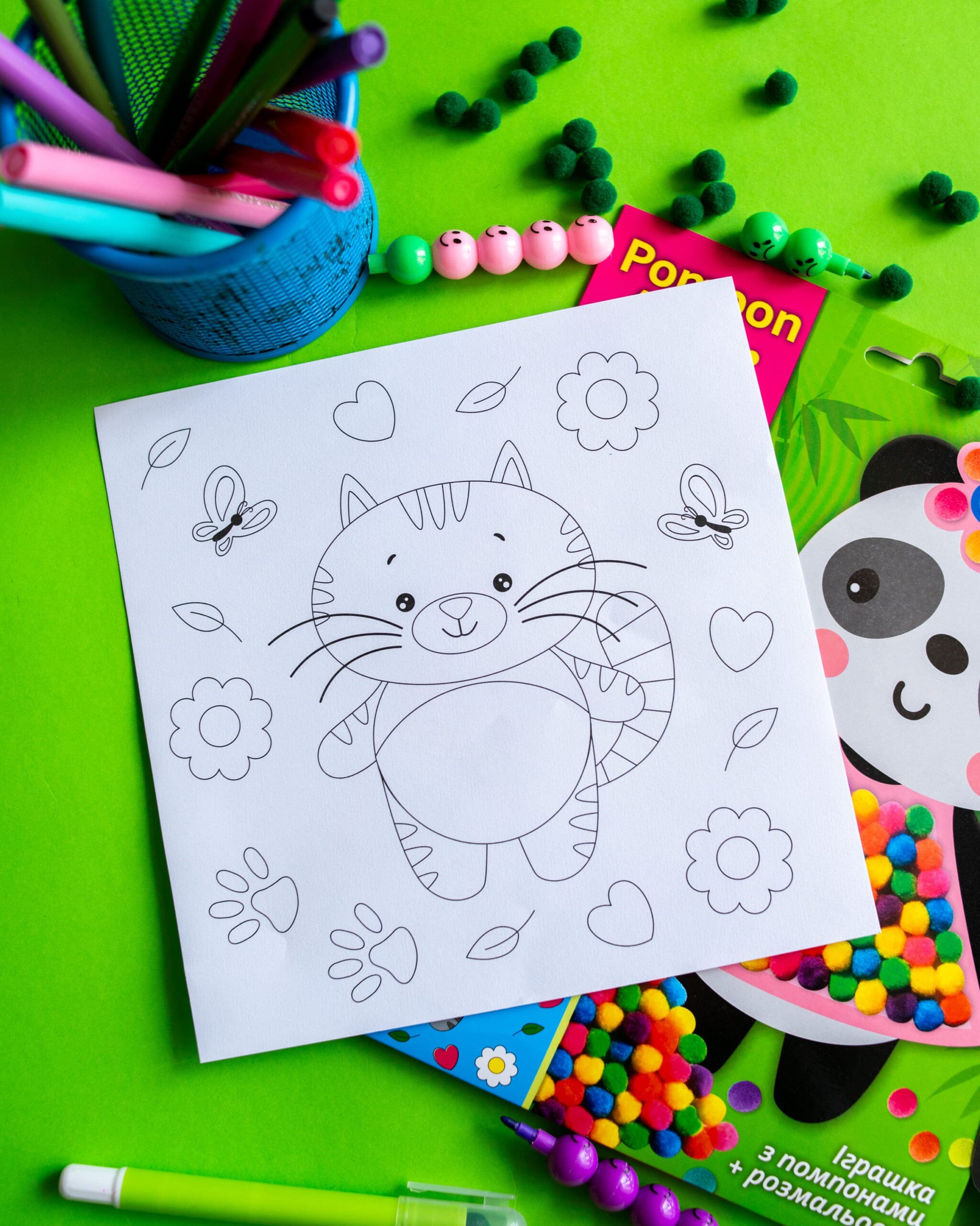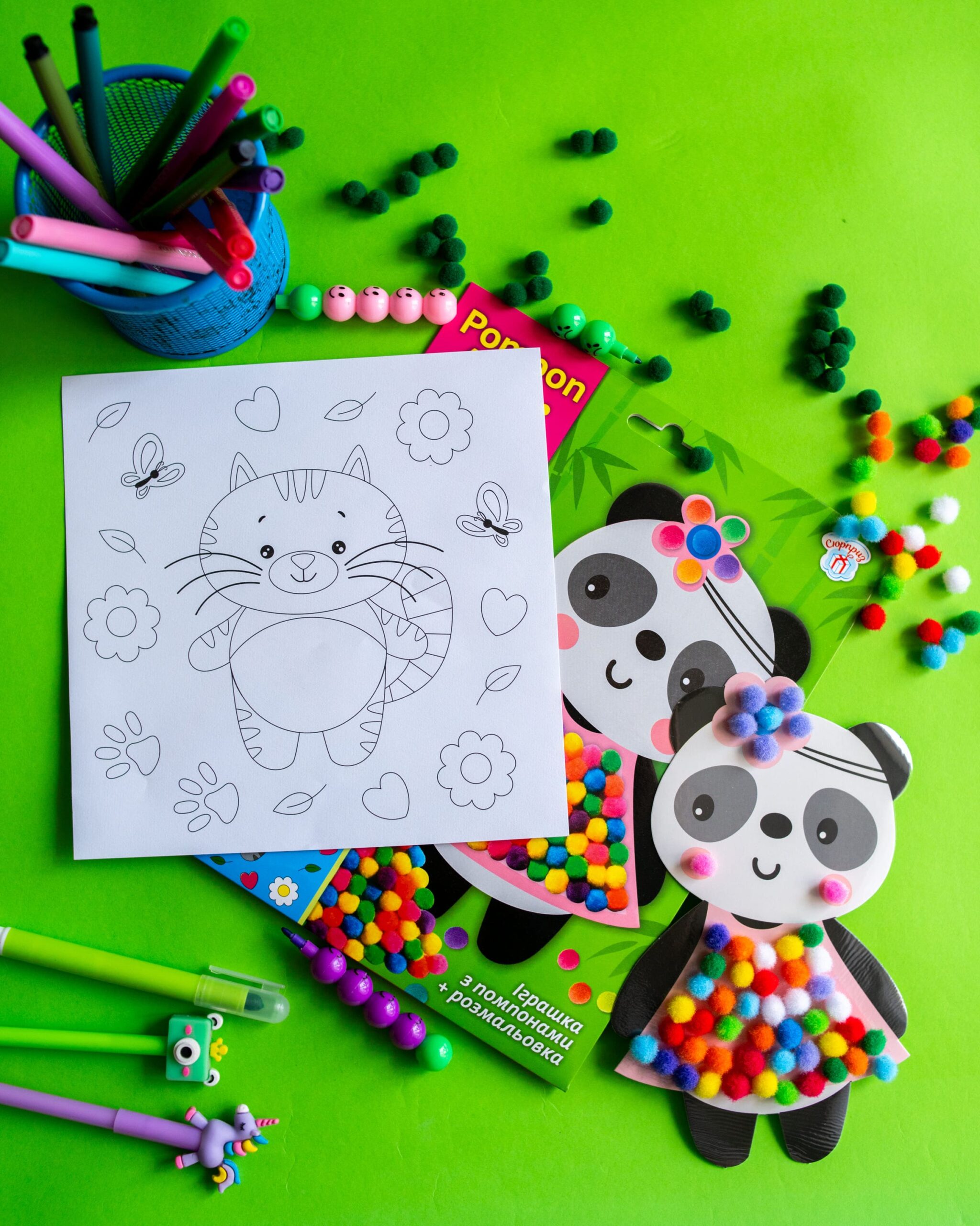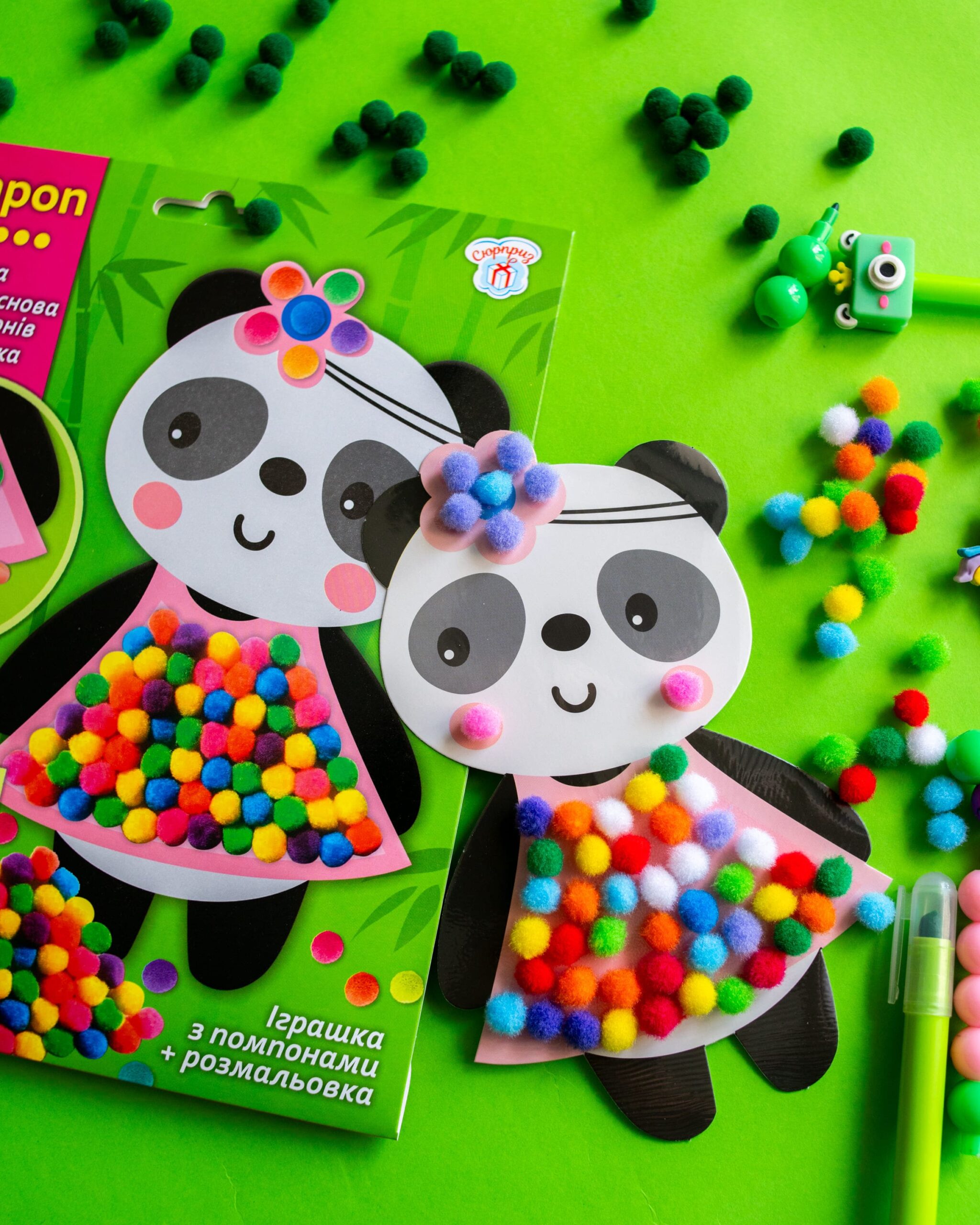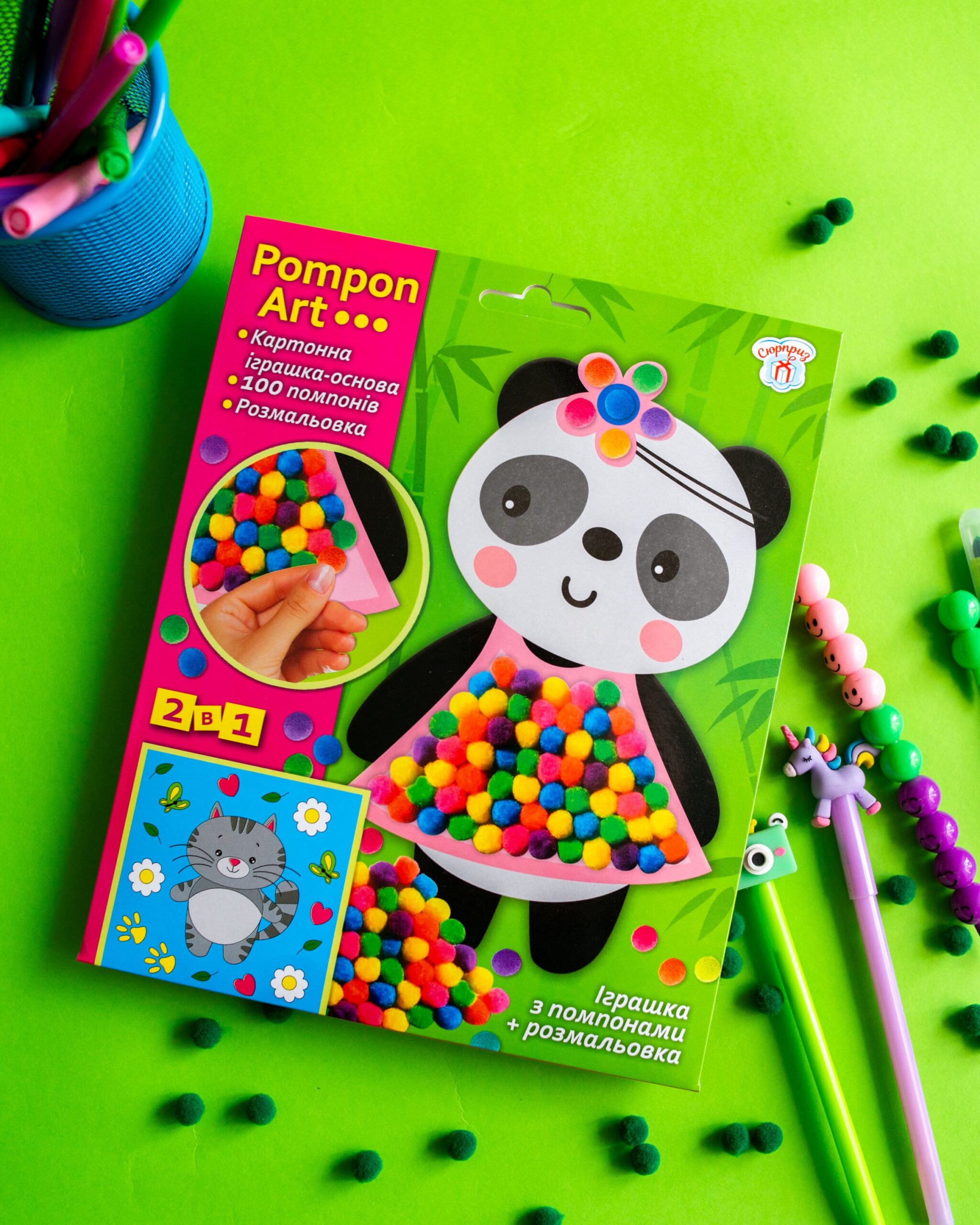 2 в 1! Іграшка-помпон + розмальовка в одному наборі! Малюки від 3 років зможуть легко створити свою першу поробку.