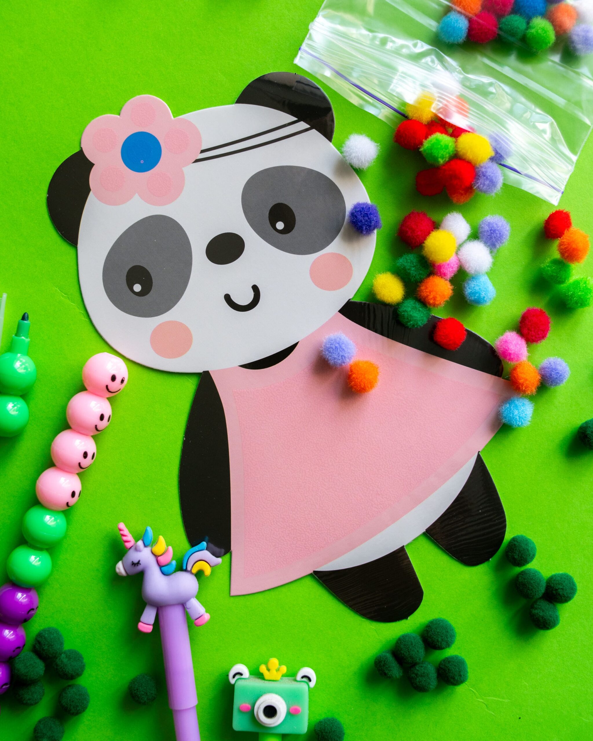 У комплекті – 100 яскравих та м’яких на дотик помпонів і картонні основи з милими персонажами. Достатньо зняти захисну плівку й приклеїти помпони на позначені місця або прикрасити ними розмальовку. Набір розвиває дрібну моторику, знайомить з кольорами, дарує творчість і задоволення від гри!»