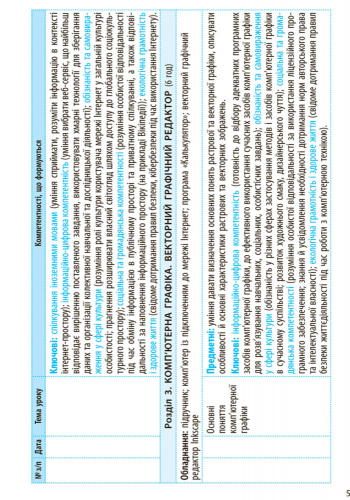 | Клас | Календарно-тематичний план з урахуванням компетентнісного потенціалу предмета |