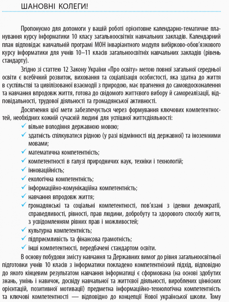 КТП Інформатика 10 кл. Рівень стандарту (Укр) НОВА ПРОГРАМА