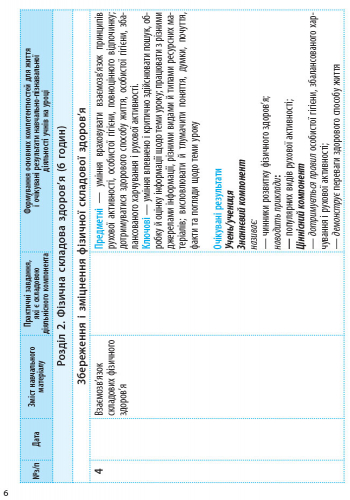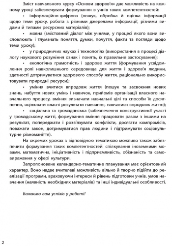 Запропонований календарно-тематичний план розроблено відповідно до програми для загальноосвітніх навчальних закладів «Основи здоров’я» 5–9 класи