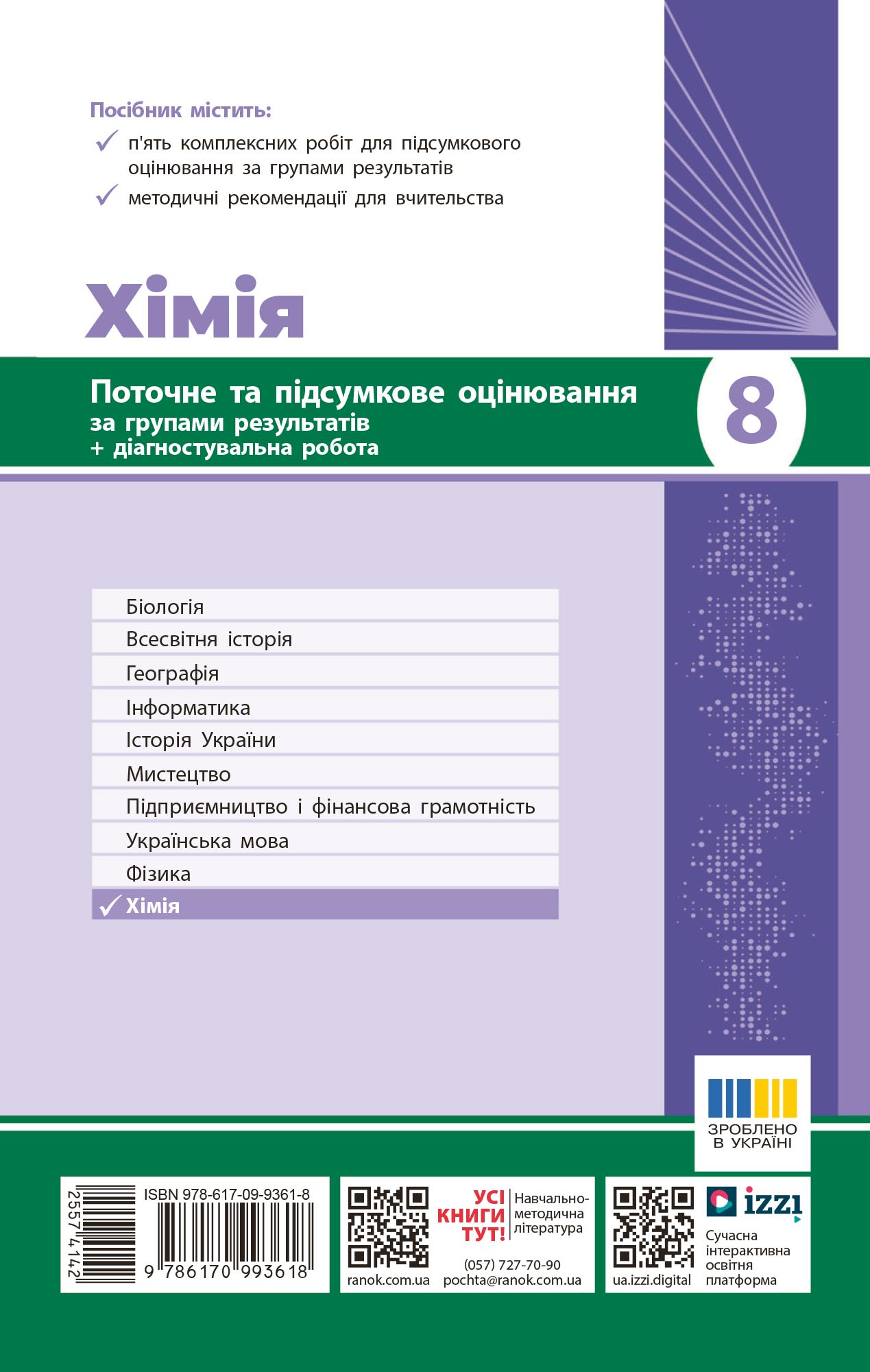 Хімія. 8 кл : поточне та підсумкове оцінювання за групами результатів