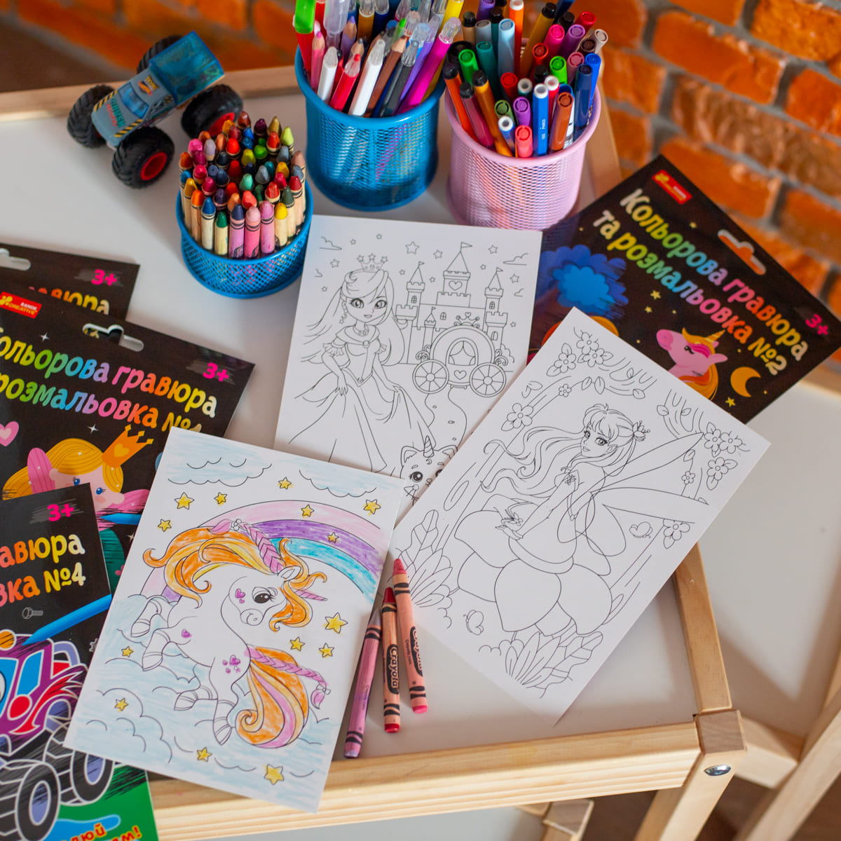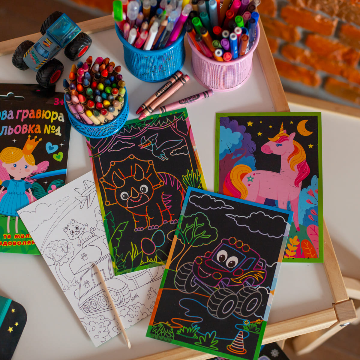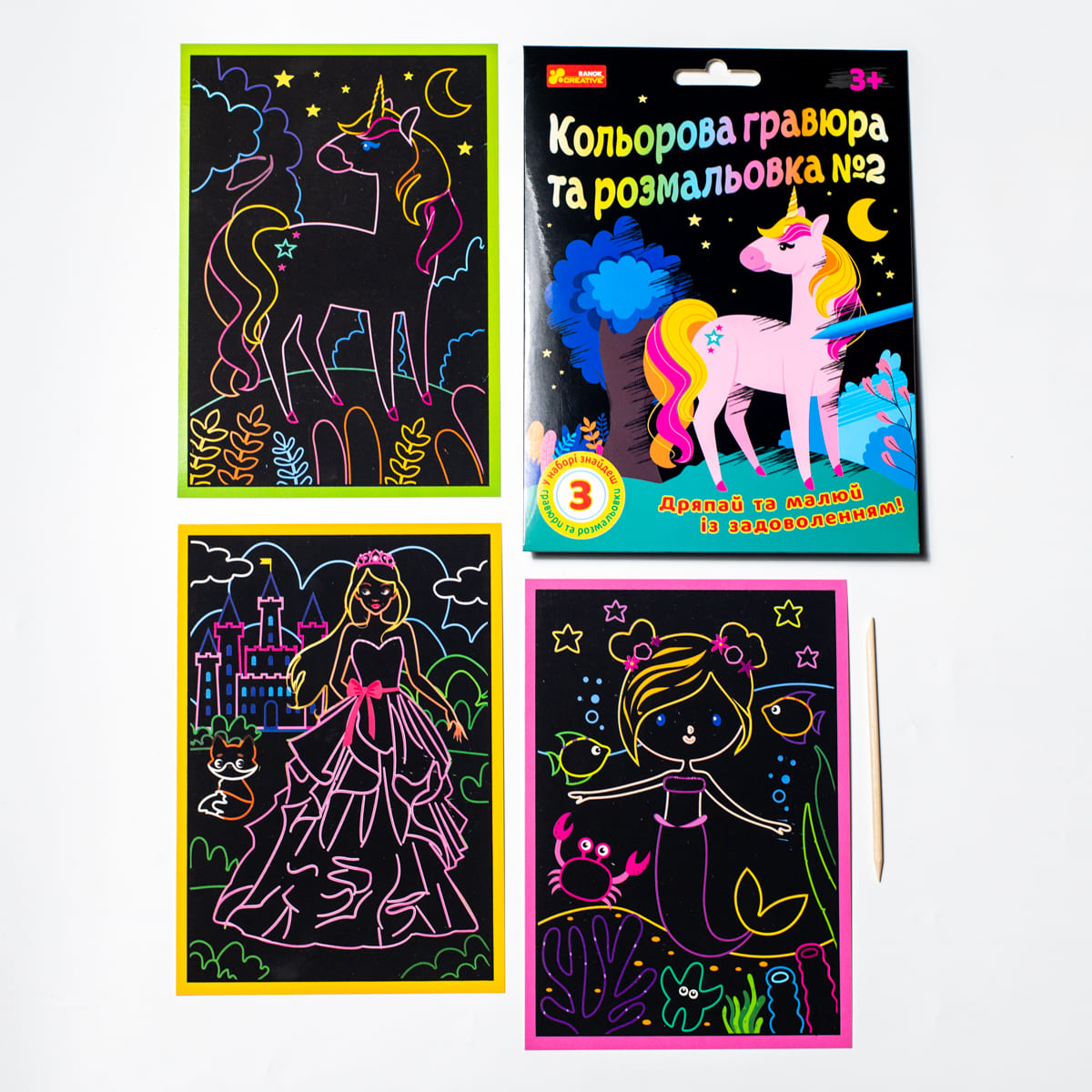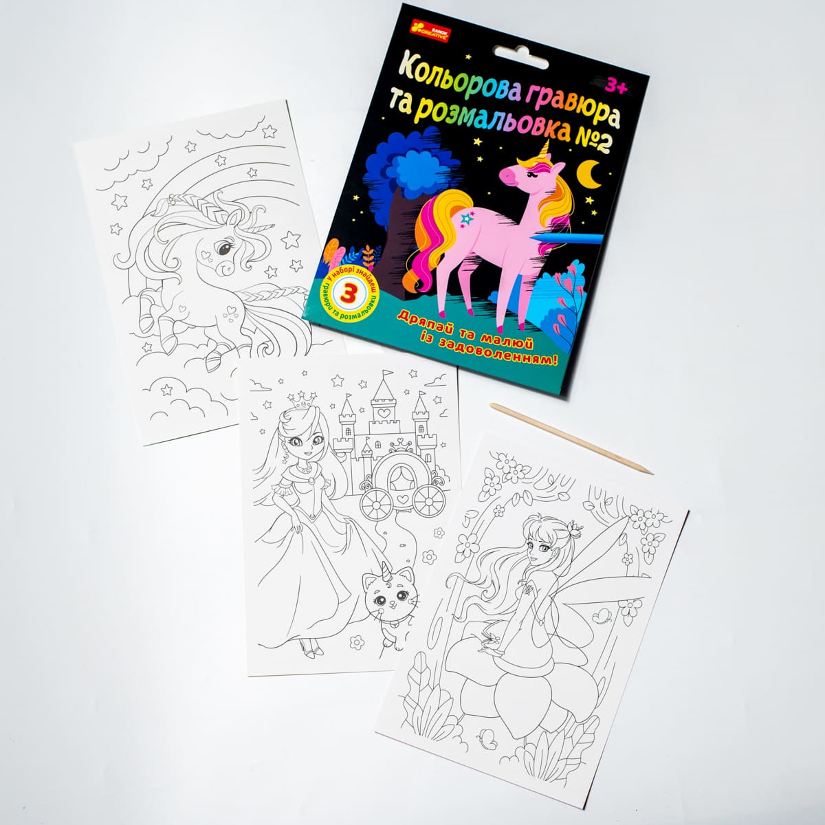 Кольорова гравюра та розмальовка – це неймовірно захоплюючий набір для творчості та розвитку у дітей графомоторних навичок, фантазії та посидючості