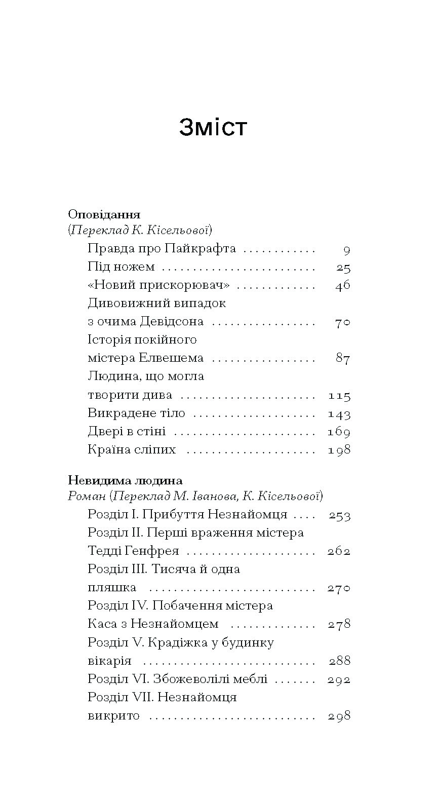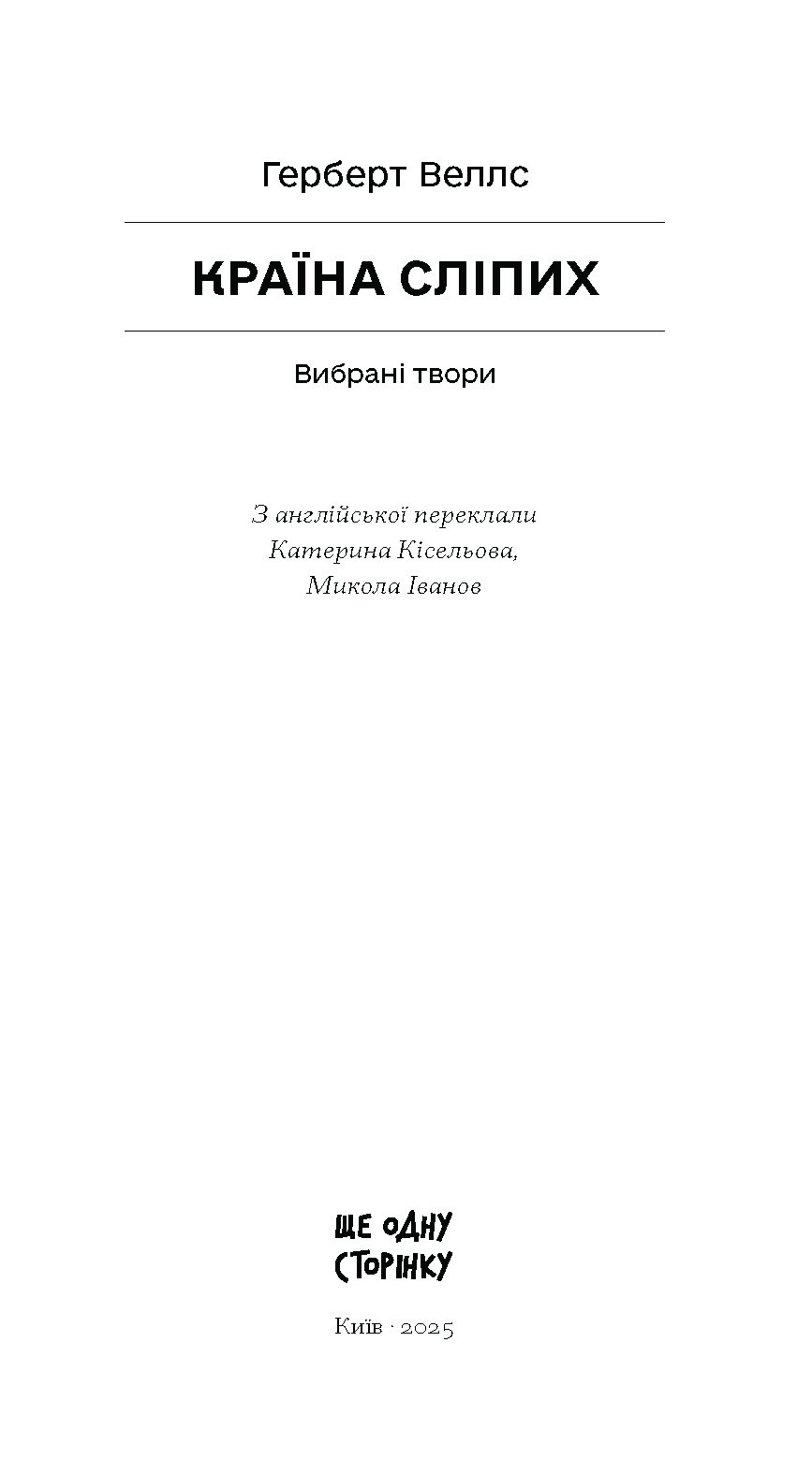 У збірці творів ≪Країна сліпих≫ представлені оповідання і роман, у яких Герберт Веллс як незрівнянний містифікатор експериментує з органами чуттів своїх персонажів, наділяє їх суперсилами. Так, герої потрапляють у чужі тіла, втрачають здатність бачити або ж, навпаки, поглядом охоплюють інший край світу, набувають блискавичної швидкості, стають усемогутніми, ну й, звісно ж, невидимими…