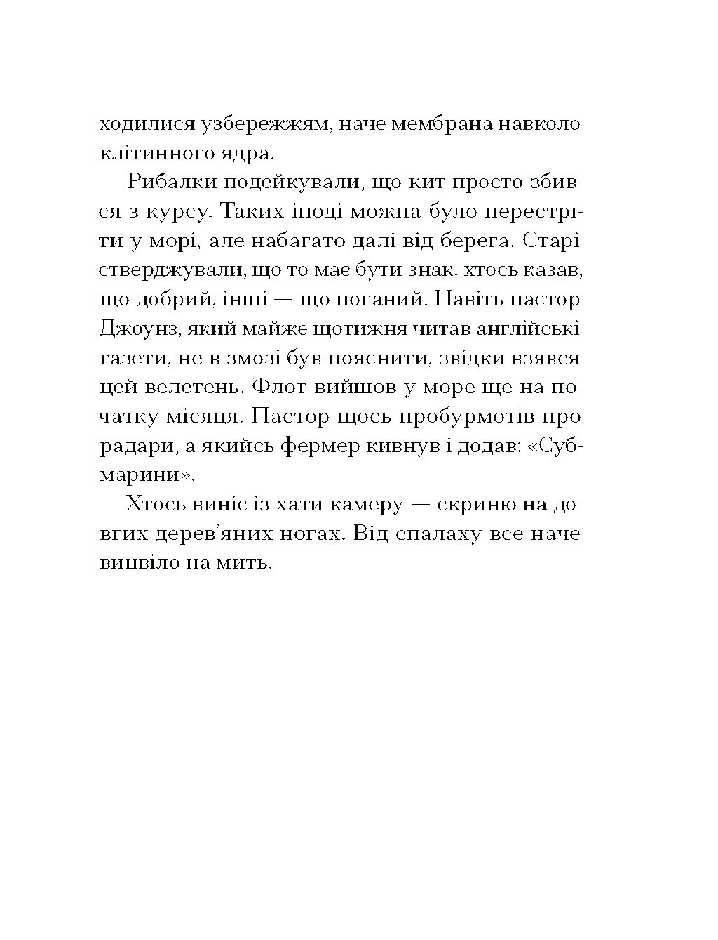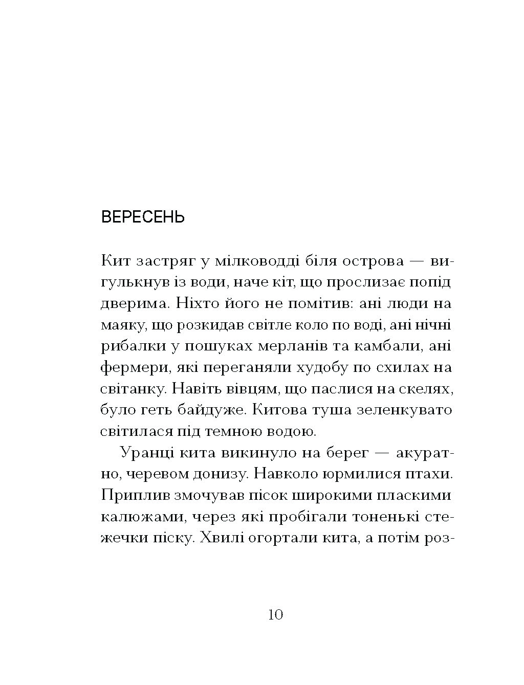 Вісімнадцятирічна Манод у 1938 році живе з батьком та молодшою сестрою на віддаленому острові біля узбережжя Вельсу. В оточенні вівчарів та рибалок, щодня спостерігаючи порожні, покинуті домівки, дівчина намагається уявити своє майбутнє. Одного дня на суворий, вишмаганий вітрами берег викидає кита, Це зумовлює як хвилю забобонних чуток, так і приїзд двох антропологів з великої землі.