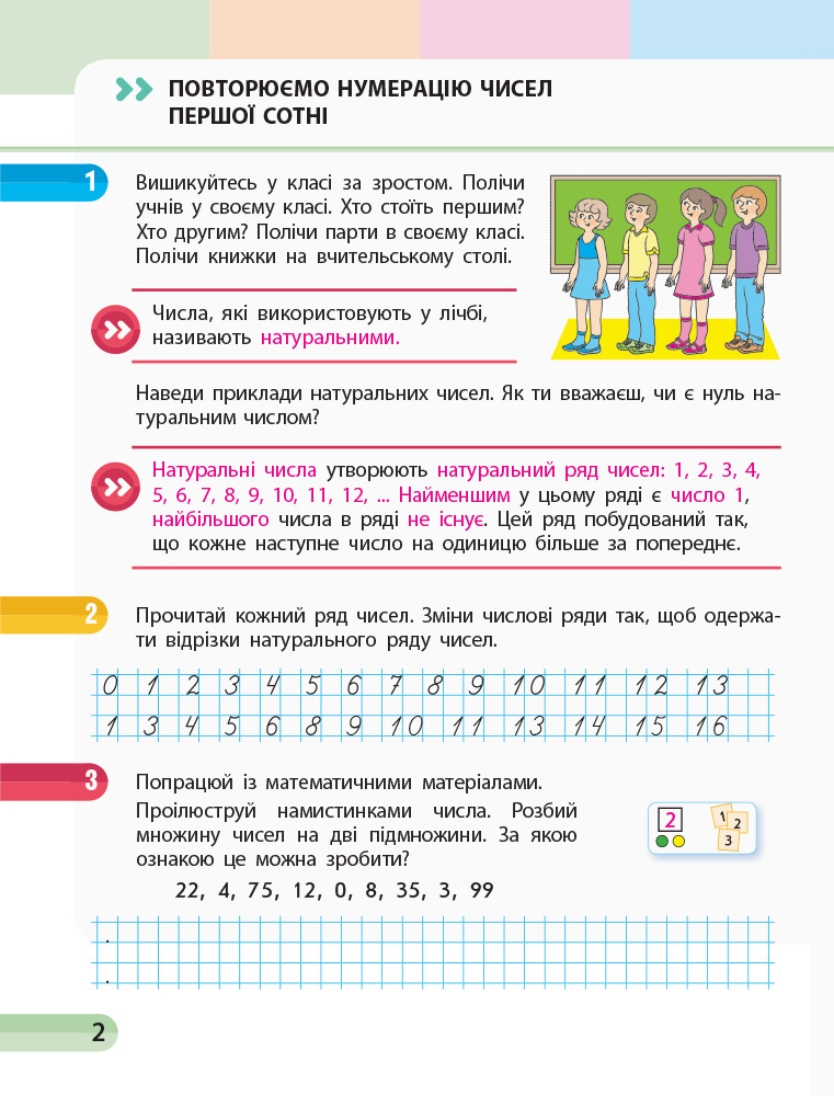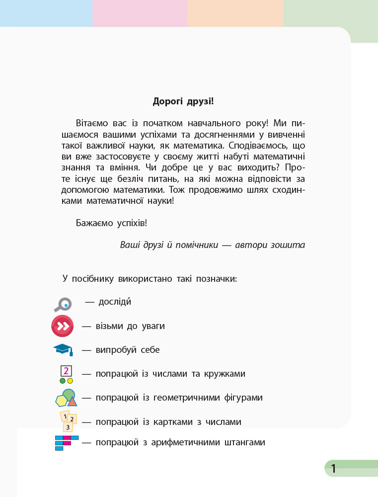 Посібник складений відповідно до Типової освітньої програми, розробленої під керівництвом О. Я. Савченко, і є складовою навчально-методичного комплексу з математики для 2 класу авторів С. О. Скворцової, О. В. Онопрієнко. До комплексу входять: навчальний зошит у 4 частинах із додатком «Працюю самостійно» для самостійної роботи учнів, посібник «Моніторинг навчальних досягнень», збірник завдань для формувального оцінювання, розробки уроків.