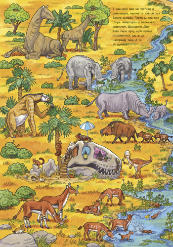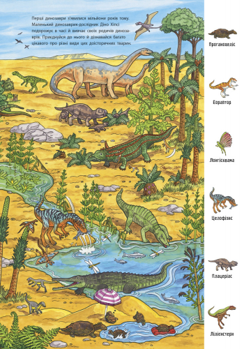 Книги серії «Мій великий віммельбух» – це картонки для найменших читачів. У книзі «Динозаври» малюк познайомиться з доісторичними мешканцями, від часу їх виникнення до музейного сьогодення. Малюнки в книгах вдало поєднують реалістичні зображення з тонким гумористичним змістом..