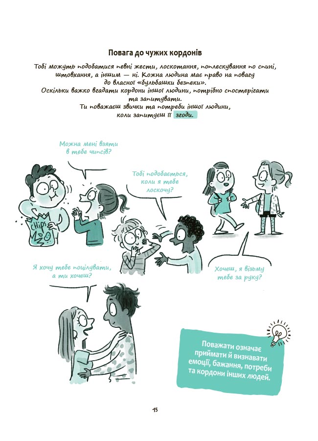 «Моє тіло належить мені» допоможе батькам без упередження пояснити дитині питання інтимної близькості, сексуального насильства, особистої безпеки. Ця книжка про повагу до тіла, конфіденційність, згоду та сексуальну безпеку.