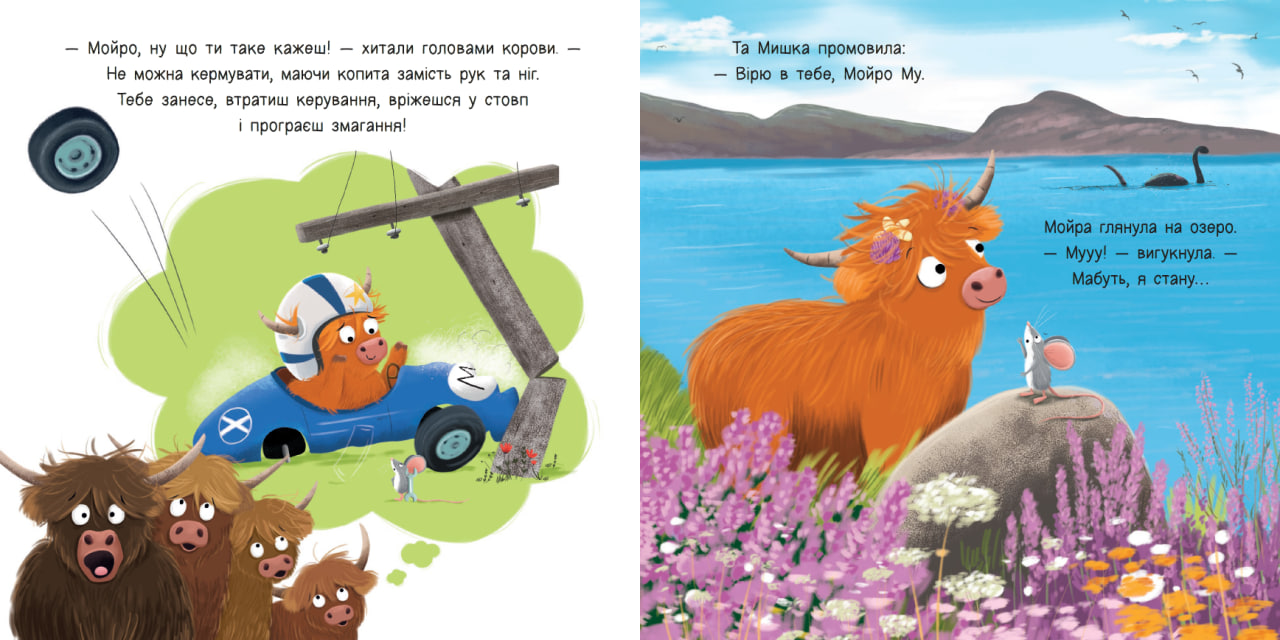 Мойра Му живе на фермі, пасеться високо в горах, їсть свіжу траву, як і всі інші корови. Та, на відміну від них, вона наважується мріяти й втілювати свої мрії!