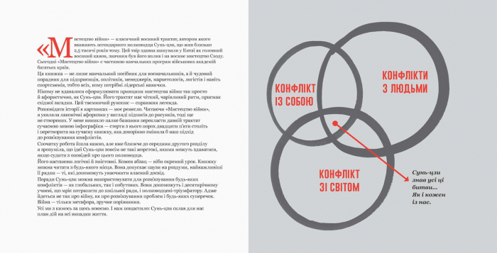 «Мистецтво війни в ілюстраціях» – натхненна суміш, робота, яка повністю оживляє багаторічний бестселер і робить його доступним для нового покоління студентів, підприємців, лідерів бізнесу, художників, а також ті, хто знає, як цінувати керівництво до майбутнього в навчаннях минулого.