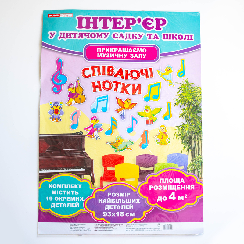 Набір «Співаючі нотки» — чудове рішення для оформлення музичної зали в ДНЗ. Яскраві елементи створюють атмосферу творчості й натхнення, ідеально підходять для занять, свят та розвивальних заходів. Можна комбінувати з іншими тематичними наборами. Декор виготовлений із міцного матеріалу, тож витримує багаторазове використання. Набір допомагає зацікавити дітей музикою, стимулює розвиток творчих здібностей і робить простір затишним і емоційно насиченим.