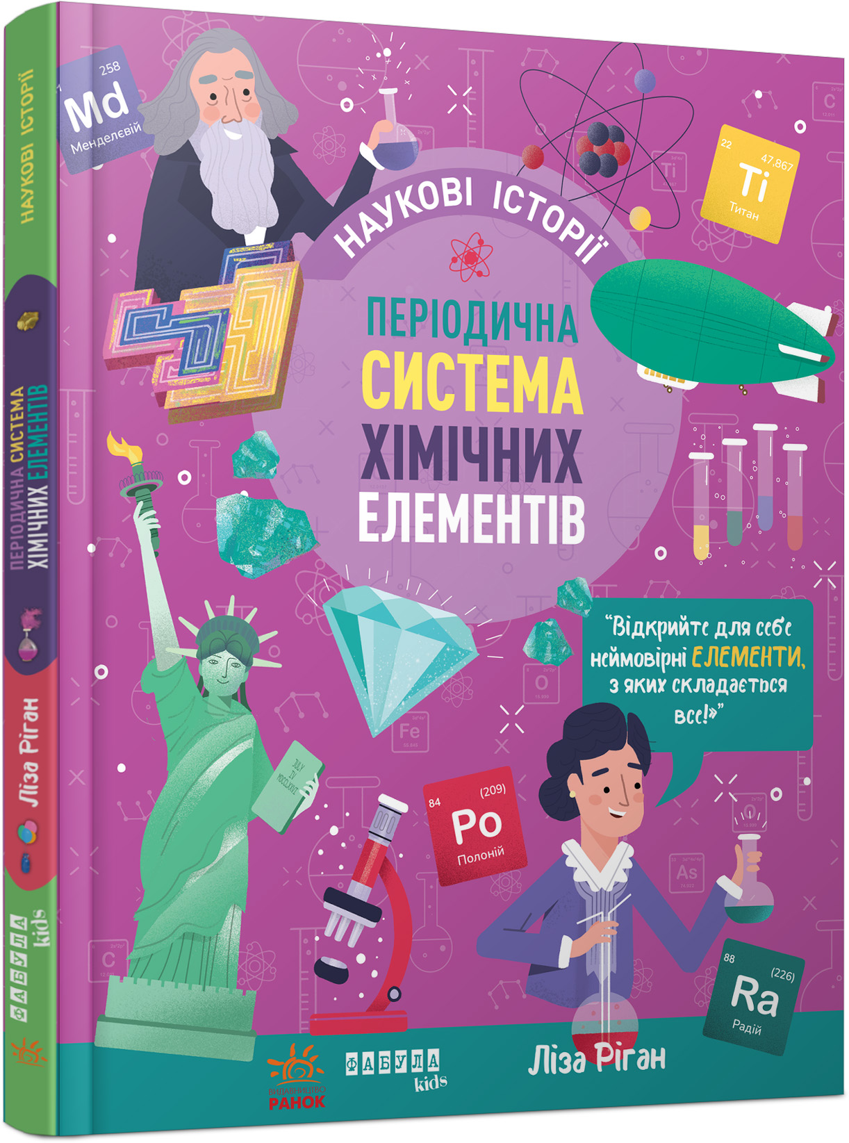 Цікаві й пізнавальні факти про хімічні елементи та їх першовідкривачів, розповідь про періодичну систему, яка кардинально змінила наукові погляди на світ навколо нас, а також прості та зрозумілі пояснення основ хімії — усе це в книжці Лізи Ріган, авторки понад 200 видань, присвячених розвитку й навчанню дітей.