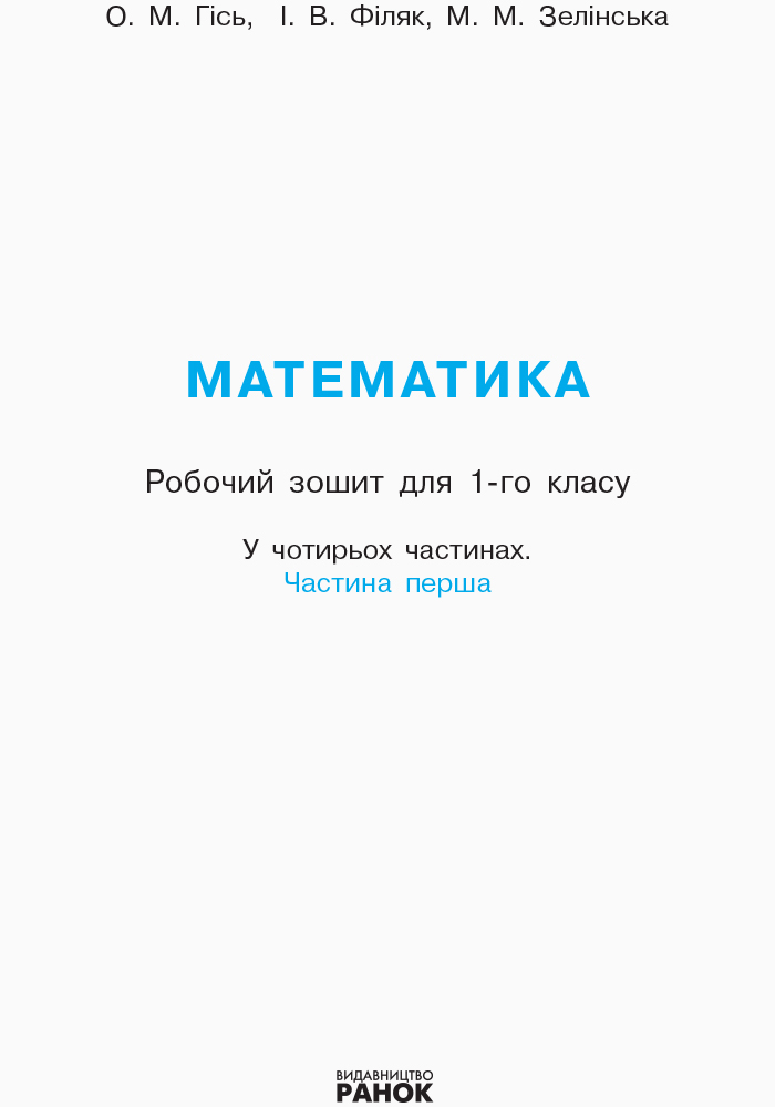 Робочий зошит складений відповідно до Типової освітньої програми, розробленої під керівництвом Р. Б. Шияна, поурочно узгоджений з підручником і навчальним посібником «Математика» для 1 класу (авт. Ольга Гісь, Ірина Філяк). Посібник сприяє формуванню загальноосвітніх умінь і навичок учнів/учениць, а також призначений для кращого засвоєння ними програмового матеріалу.