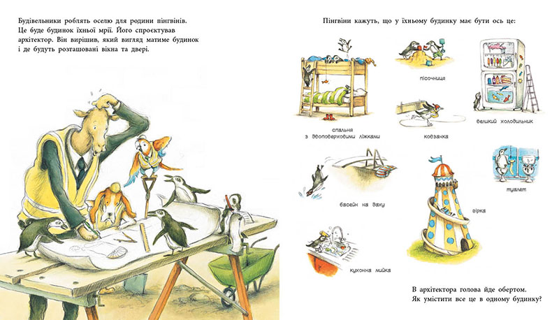 Віслюк — справжня халепа з вухами на будівельному майданчику. Уся бригада будівельників — майстри своєї справи — намагаються навчити його всього, що знають. Навіть, якщо це знання, як правильно пити чай зі смаколиками у перерві між завданнями. Але побудувати дім мрії для пінгвінів — ще той виклик. Чи вдасться віслюкові знайти собі справу до душі у цьому будівельному хаосі?