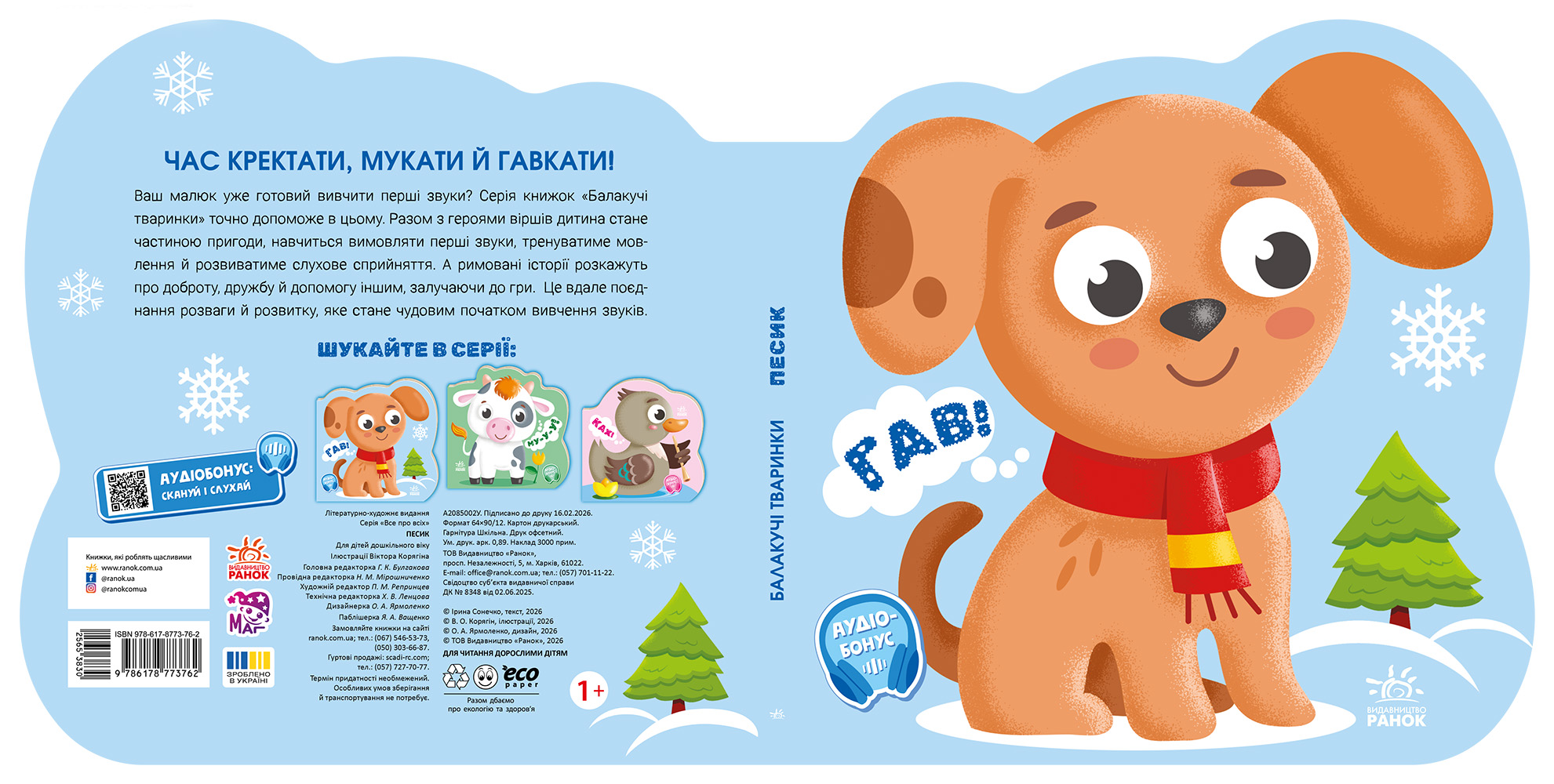 Ваш малюк уже готовий вивчити перші звуки? Книжка “Песик” точно допоможе в цьому. Разом з героєм вірша дитина стане частиною пригоди, навчиться вимовляти перші звуки, тренуватиме мовлення й розвиватиме слухове сприйняття. А римована історія розкаже про доброту, дружбу й допомогу іншим, залучаючи до гри. Це вдале поєднання розваги й розвитку, яке стане чудовим початком вивчення звуків.