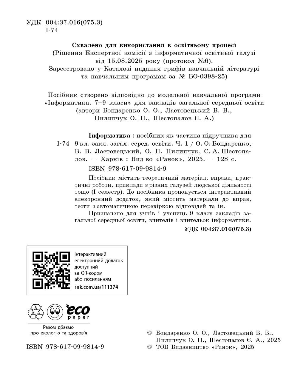 Призначено для учнів та учениць 9 класу закладів загальної середньої освіти, вчителів інформатики.