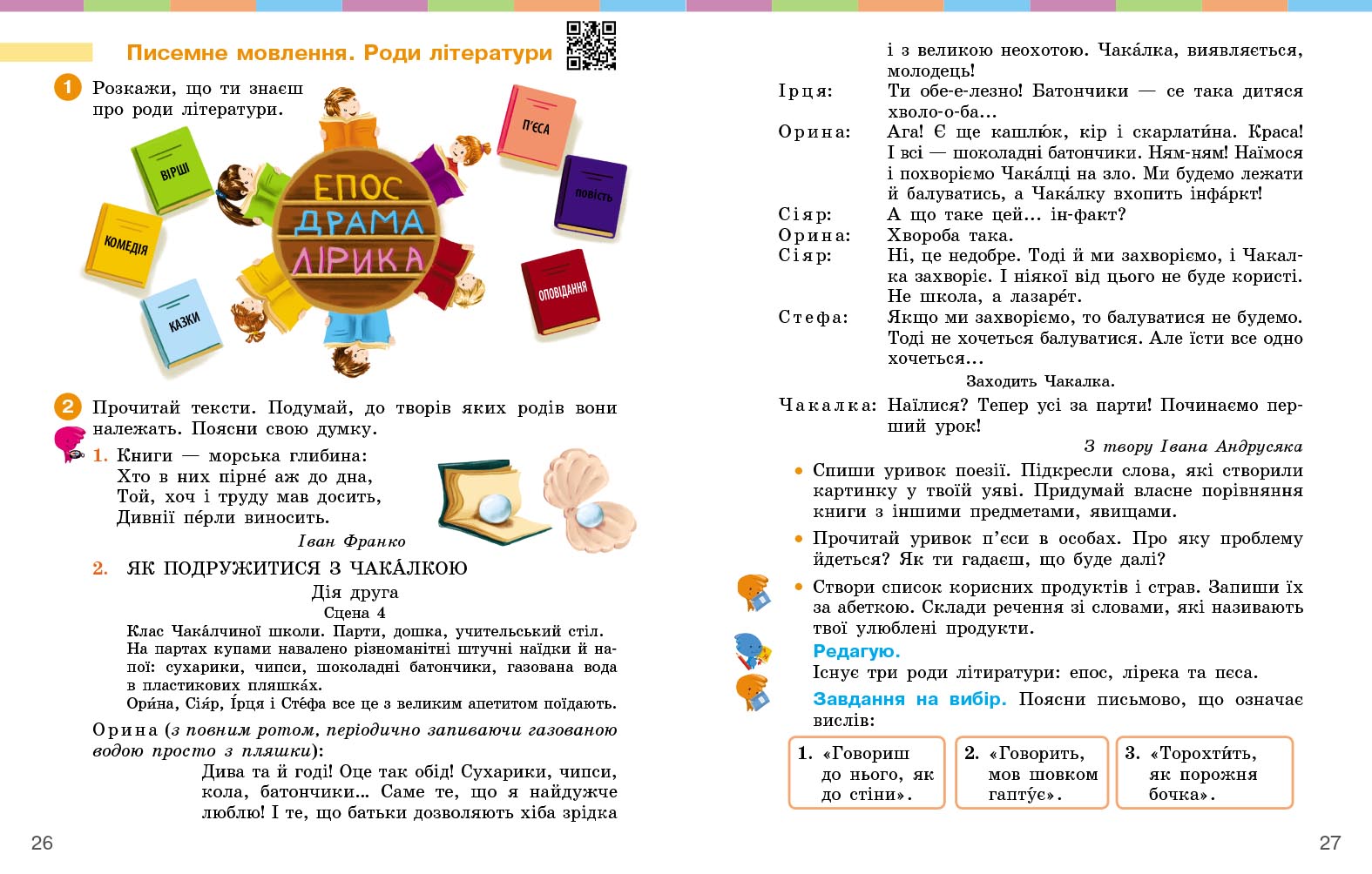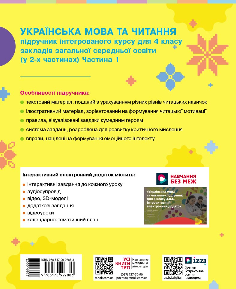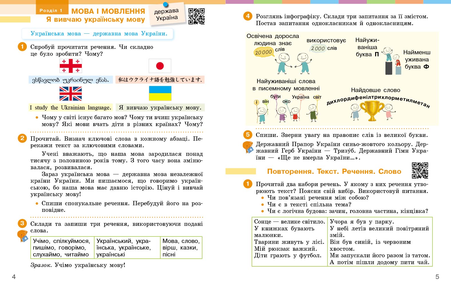Посібник складається з двох частин. Перша частина містить матеріали для першого семестру навчання: граматичні завдання, матеріал з розвитку мовлення, а також завдання з розвитку критичного, логічного, творчого мислення, завдання підвищеної складності. Матеріал подано з урахуванням психологічних особливостей четвертокласників.