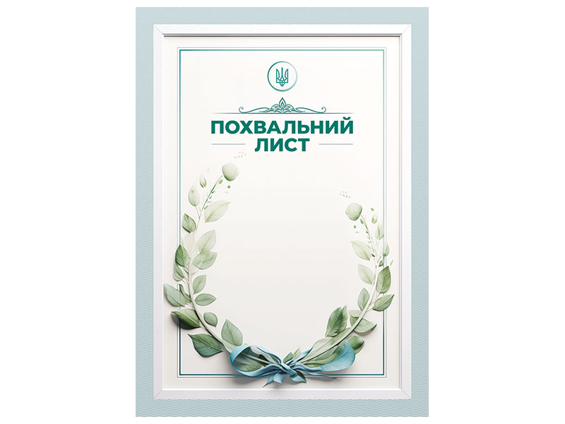 Похвальний лист із зеленим віночком – вишукана та стильна відзнака для дітей і дорослих! Він підходить для учнів, студентів, педагогів, колег або партнерів * Вишуканий дизайн: