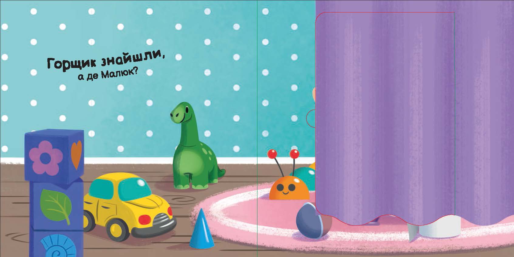 Малюк готовий до нового відкриття: час знайти свій горщик! Маля шукає його разом із друзями-звірятами: заглядає у схованки, відкриває віконця… Де ж горщик?