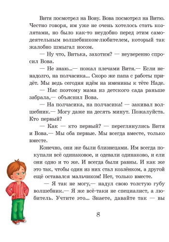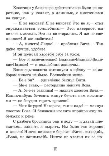 Казка Всеволода Нестайка «Пригоди близнят-козенят» розповідає про неймовірне перетворення братів-близнюків на козенят, їх неочікуване знайомство з чарівником та про подорож казковою країною, наповнену перепонами та випробуваннями. Добра, цікава та повчальна історія очікує маленьких читачів на сторінках цієї книги.