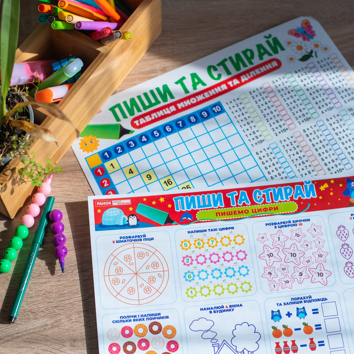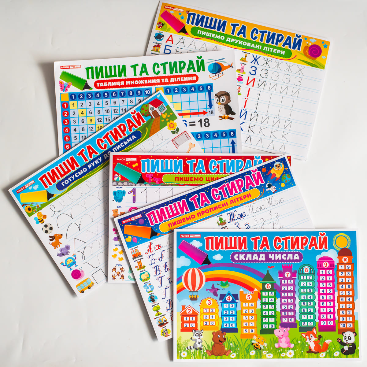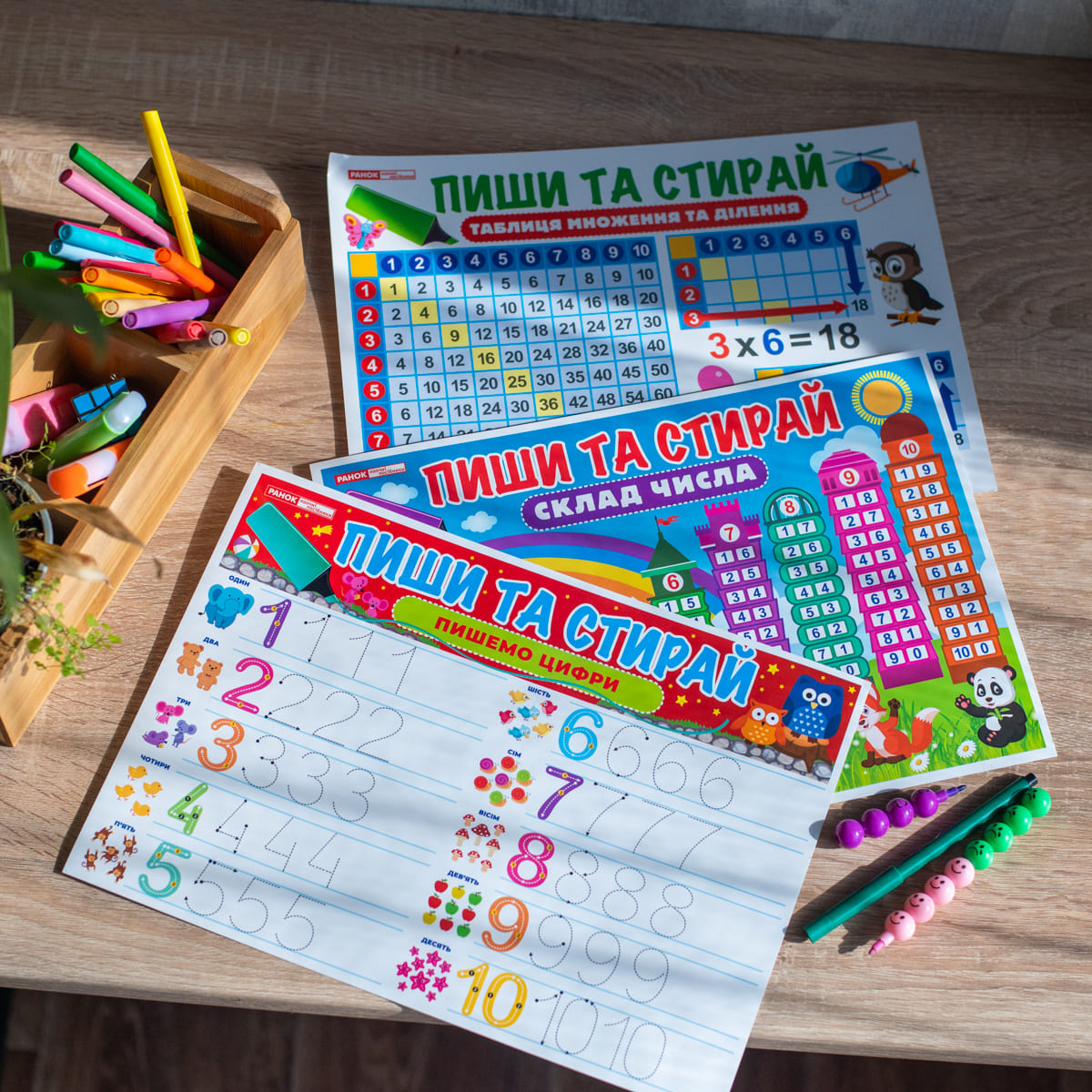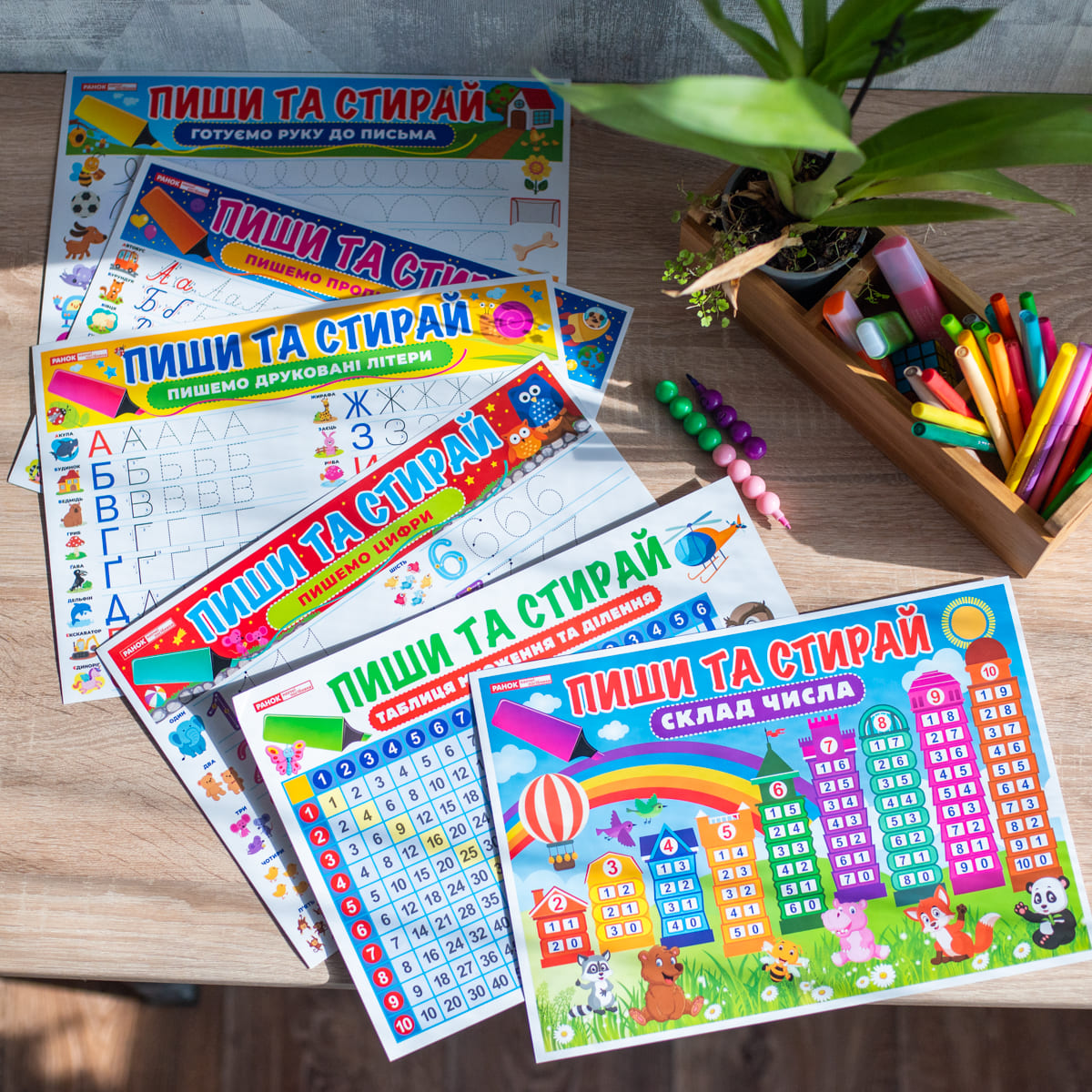 Тренажер “Пиши-стирай” – це двосторонній стенд для швидкого навчання письма. Він створений за сучасними вимогами освітніх програм та призначений для дошкільнят і учнів початкової школи.
