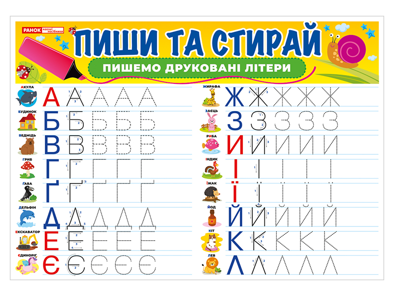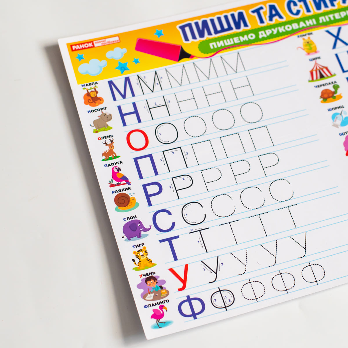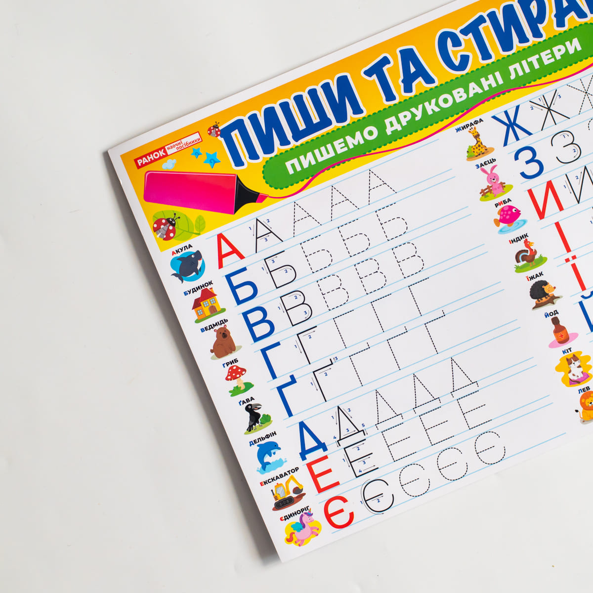 Завдяки їй малеча легко навчиться писати друковані літери, маючи перед очима вже готовий приклад.