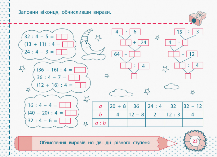 “Точилка” — це серія зошитів для відпрацювання навичок з математики та української мови. Кожна сторінка — маленький, але впевнений крок до міцних знань, підкріплених практикою. Серія містить завдання за всією програмою з предметів.