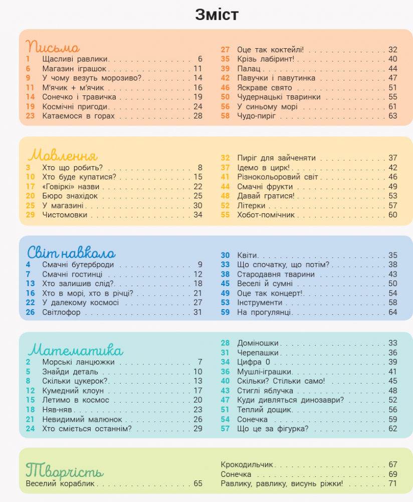 Это уникальное пособие для развития навыков письма, чтения, математики и творчества ребёнка. Сборник познакомит ребёнка с окружающими миром. Игровые задания с наклейками помогут лучше усвоить информацию.