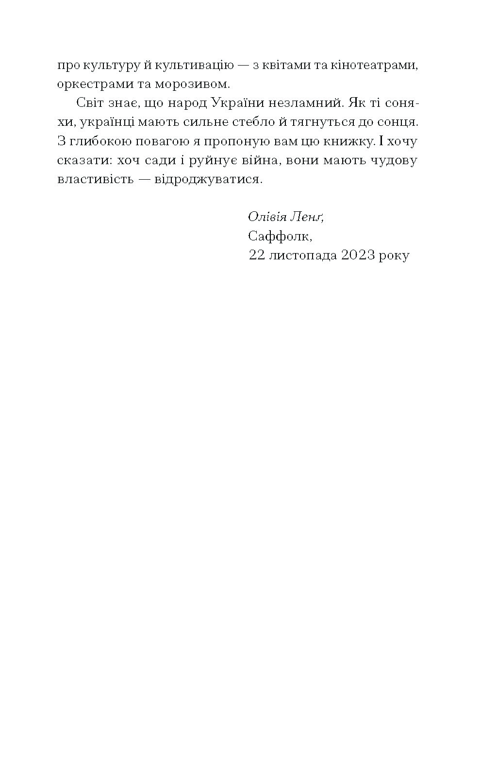 Олівія Ленґ 2020 року переїхала до старого будинку, визначною рисою якого був сад Королівського садівничого товариства, який заклав видатний садівник Марк Румарі. Він створив сотні садів, але тільки цей єдиний виплекав для себе. У книзі Ленґ розповідає про свою боротьбу за відновлення цього давно занедбаного саду, про любов до садівництва та природи. Проте «Сад супроти часу» — це не посібник з догляду рослин і більше, ніж книга про садівництво.