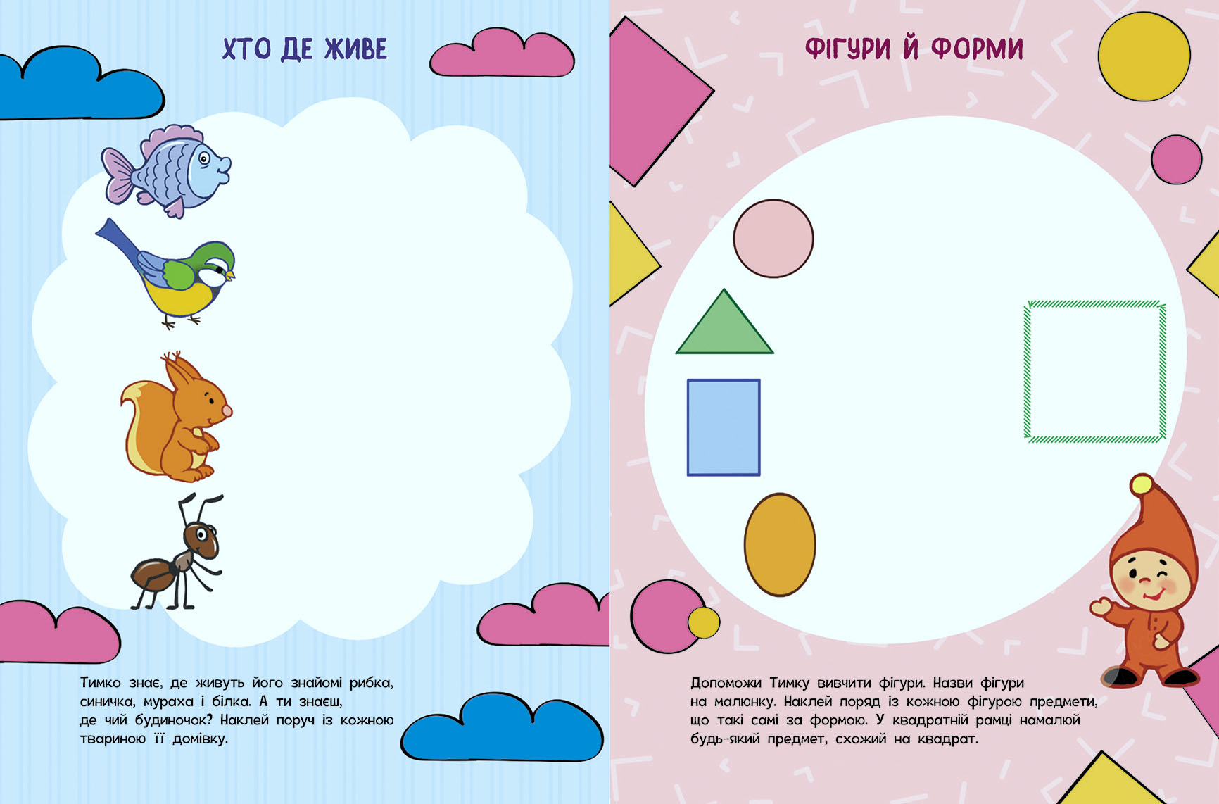 Видання допоможе дитині знаходити логічні зв’язки, потренує увагу, розширить кругозір. Усі завдання подано в ігровій формі, що сприятиме цікавому навчанню, а поява гнома Тимка, головного персонажа серії, зробить проведення часу веселішим. Зошит містить дві сторінки наліпок, які знадобляться для виконання завдань.