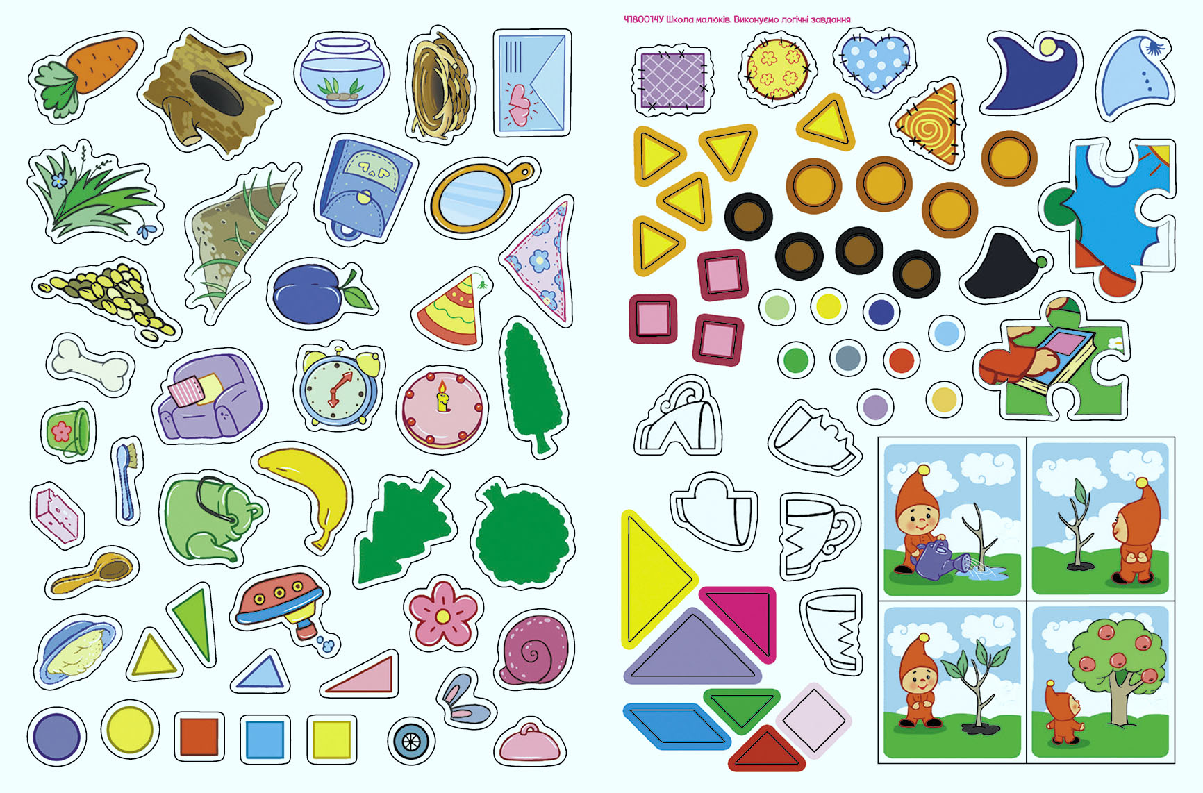Видання сприяє всебічному розвитку малюка, тренує логічне мислення, дрібну моторику рук, збагачує словниковий запас.
