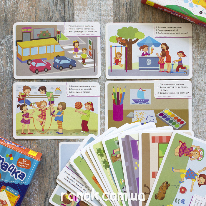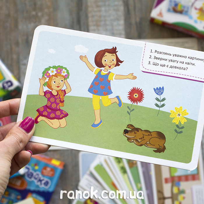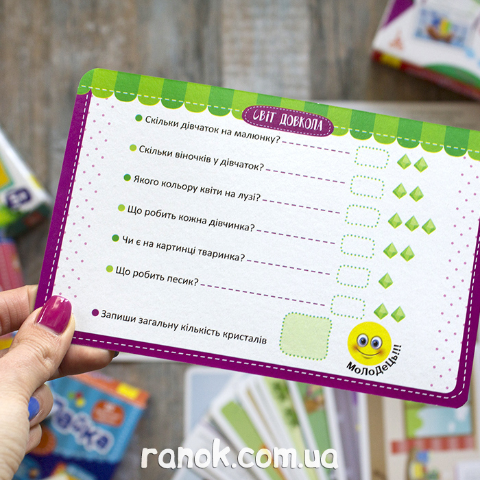 Интерактивные развивающие карточки, которые с одной стороны имеют изображения с обучающим материалом и заданиями обратить внимание на то-то и то-то, а на обороте вопросы, касающиеся изображения. За каждый правильный ответ есть определенное количество баллов, которые родитель записывает фломастером, потом подсчитывает прямо на карточке. Все это легко стереть влажной салфеткой. Развиваем память, внимание, логическое мышление, а также познавательные способности ребенка.