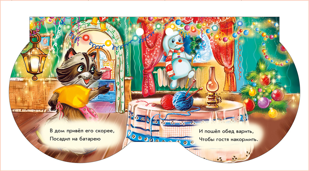 Добрая новогодняя история в стихах про енота, который привел своего друга снеговика погреться в дом и потерял его.